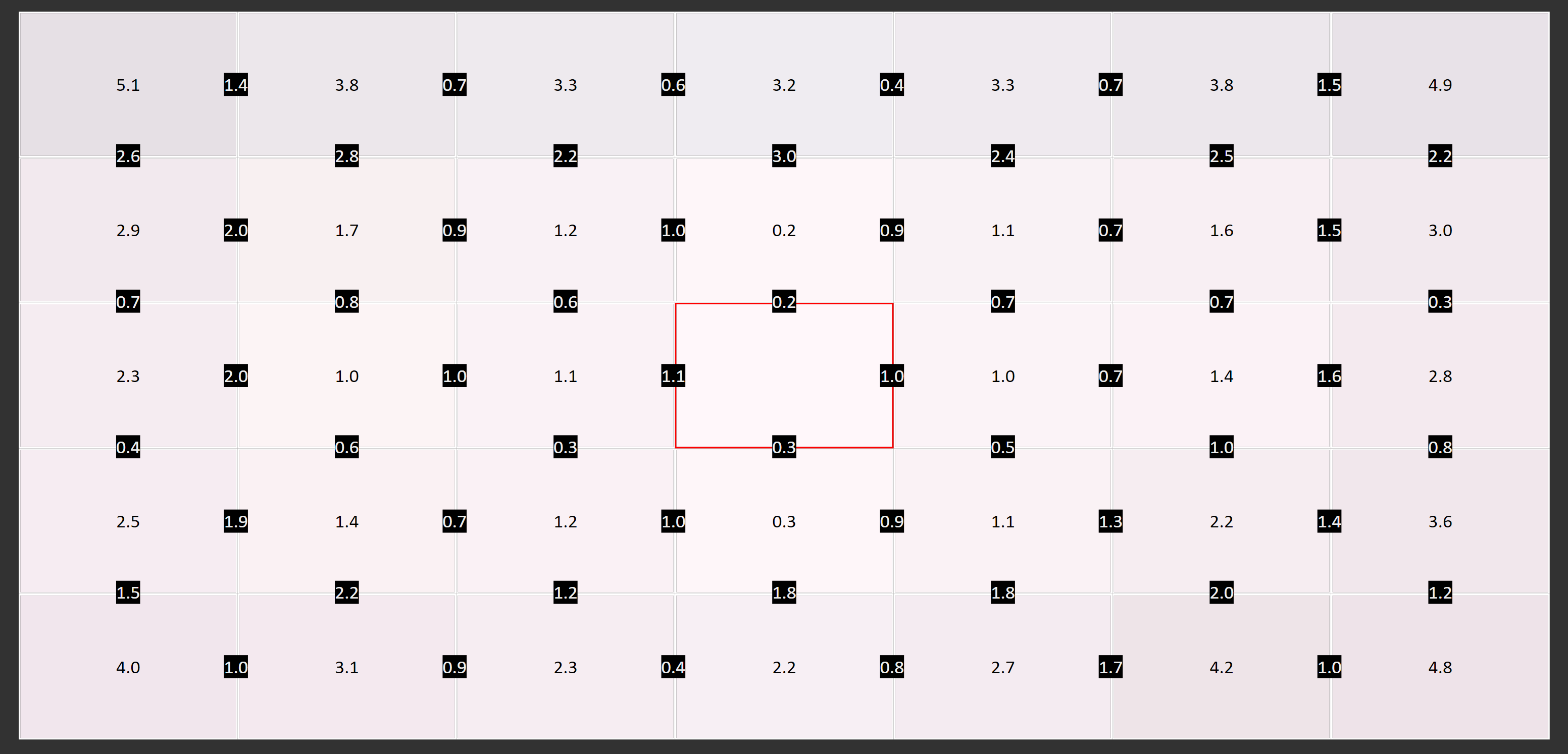 L’uniformité native est bonne, la zone centrale est précise par rapport au centre, tandis qu’aux bords extérieurs se trouve une légère vignette, ce qui n’est pas inhabituel à voir à partir d’un panneau VA courbé. Cependant, les performances ici sont un peu plus faibles que celles du PG35VQ, du moins lorsque nous comparons nos unités de contrôle.