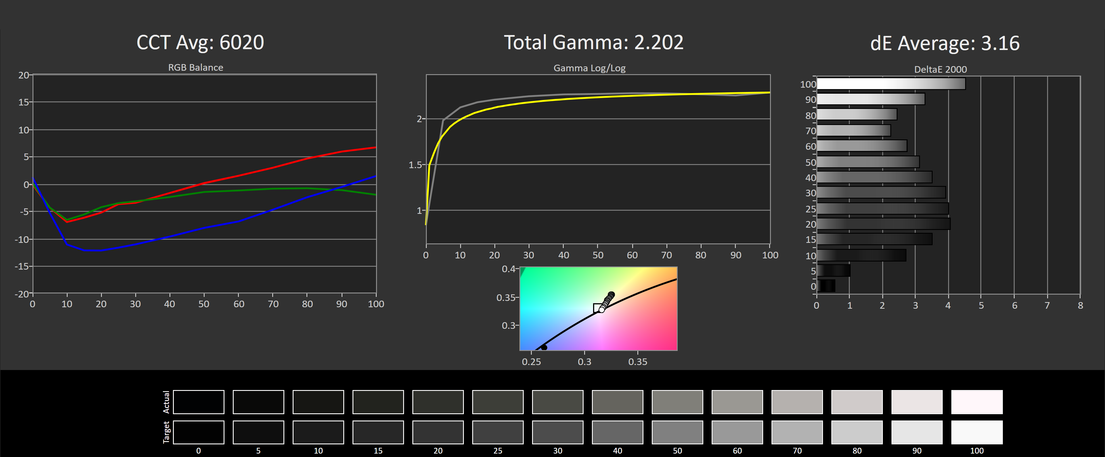 Ensuite, bien sûr, nous pouvons effectuer un étalonnage complet qui résout tous les problèmes restants, en particulier les performances de la courbe CCT. Vous pouvez même créer plusieurs profils, un pour le moniteur lorsque sRGB est verrouillé et un autre lorsqu'il n'est pas verrouillé, selon votre cas d'utilisation.