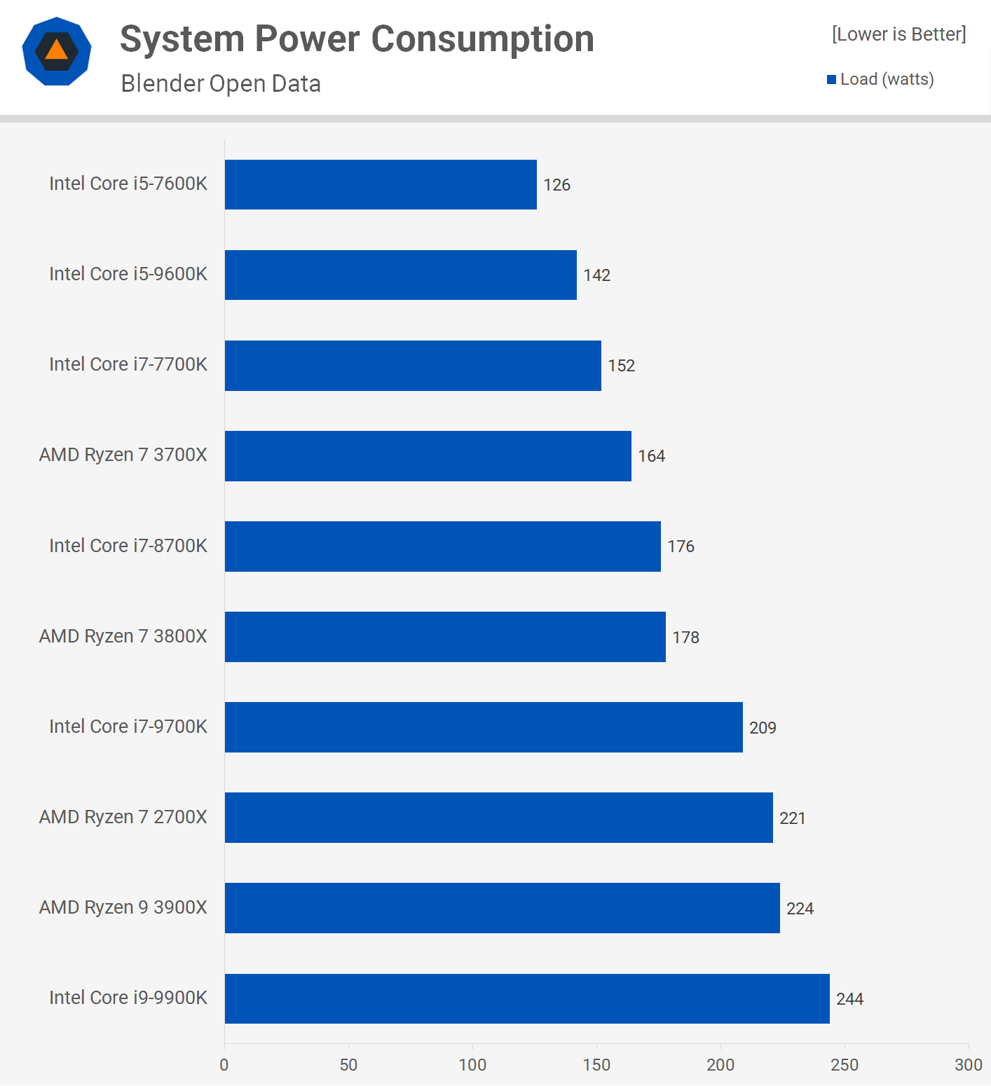 Nous constatons ici une augmentation de 9% de la consommation d’énergie, ce qui est surprenant étant donné que nous ne parlons que d’une augmentation de 2 à 3% de la fréquence de fonctionnement. Cependant, cette augmentation de fréquence s'accompagnera d'une augmentation de la tension, ce qui explique probablement pourquoi le 3800X était un peu plus gourmand en énergie que prévu.