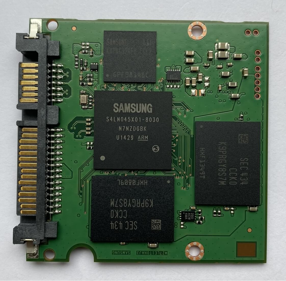 - Samsung S4LN045X01-8030: un processeur ARM Cortex R4 à 3 cœurs, qui gère les instructions, les données, la correction des erreurs, le chiffrement et la gestion de l'usure