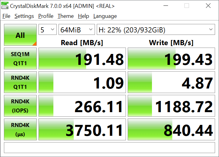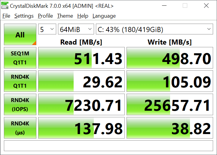 Les nombres sont un peu meilleurs, mais cela est probablement dû à la vitesse de rotation plus rapide – plus le disque se déplace rapidement sous les têtes de lecture / écriture, plus les données peuvent être transférées rapidement. Il convient également de noter que les fichiers générés dans un test de référence ne seront pas signalés dans un algorithme comme étant systématiquement utilisés au fil du temps, il est donc peu probable que le contrôleur utilise correctement la mémoire flash.