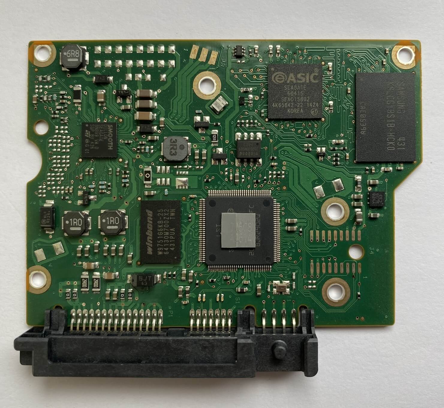 Certains fabricants ont produit disques durs hybrides – un disque dur standard qui a un peu de mémoire flash sur la carte de circuit imprimé, qui est utilisé pour stocker les données fréquemment consultées sur les disques. Voici une telle carte d'un disque hybride Samsung 1 To (parfois appelé SSHD).