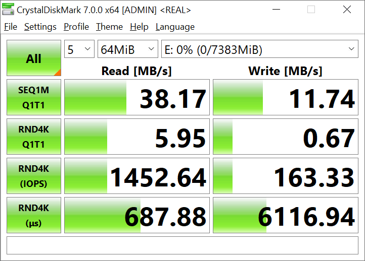 À première vue, cela semble vraiment décevant. Les taux de lecture / écriture séquentielle et d'écriture aléatoire sont bien pires que notre disque dur testé; la lecture aléatoire est cependant bien meilleure, et c'est l'avantage qu'offre la mémoire flash. L'écriture et la suppression de données sont assez lentes, mais la lecture est généralement rapide.