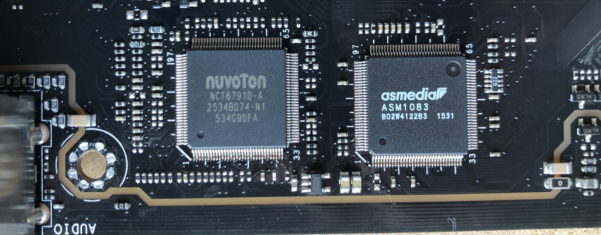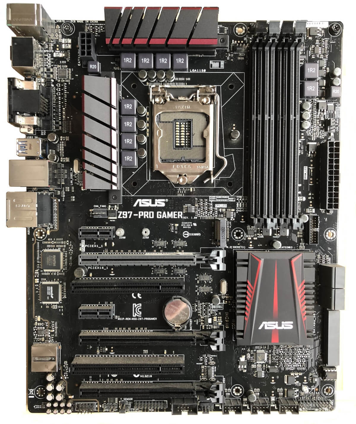 La carte mère Asus que nous avons étudiée n’est pas différente. Par exemple, la puce Nuvoton NCT6791D gère tous les petits connecteurs pour les ventilateurs et les capteurs de température intégrés à la carte; le processeur Asmedia ASM1083 à côté de lui gère les deux sockets PCI hérités, car la puce Intel Z97 n’a pas une telle capacité.