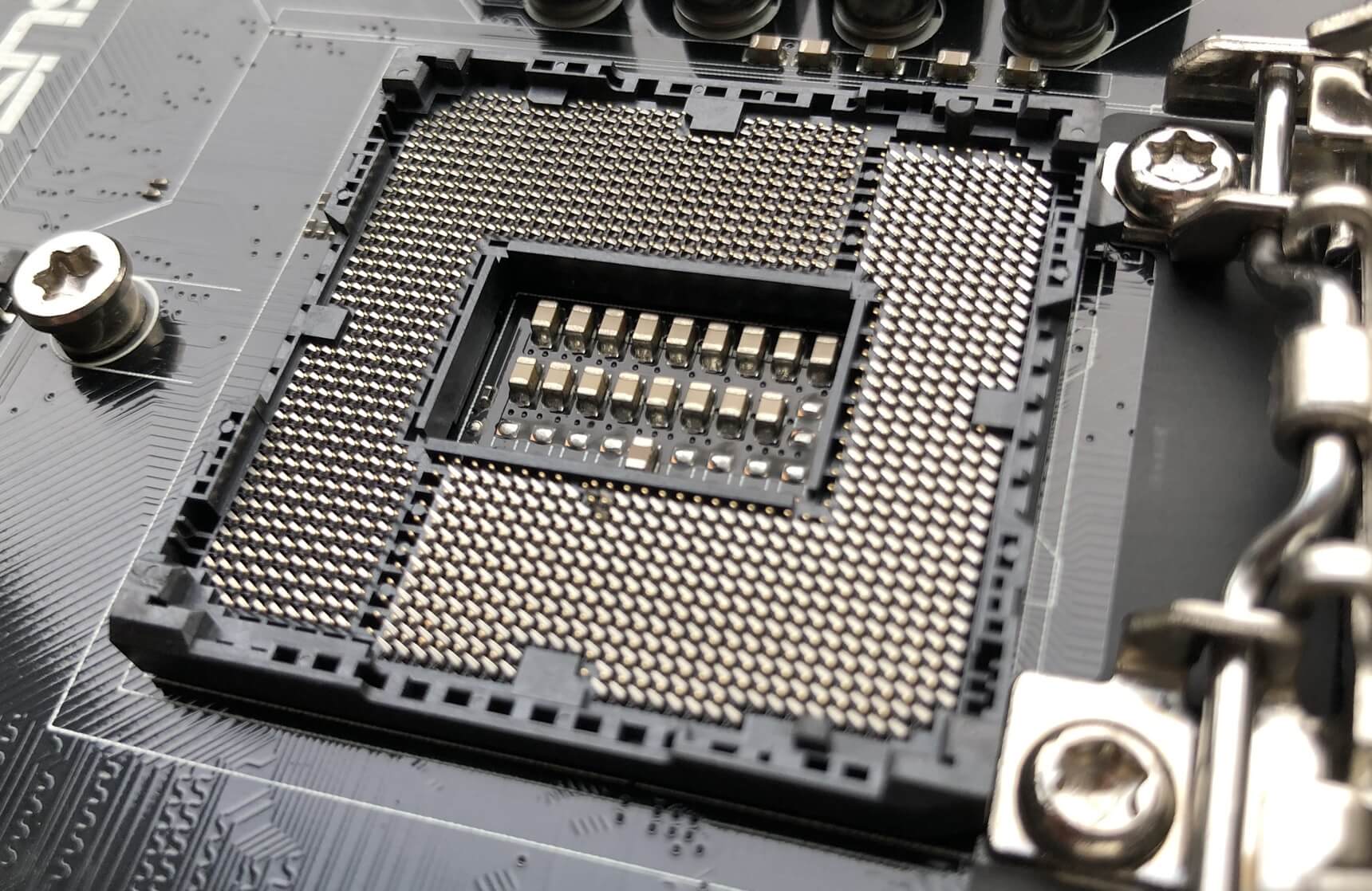 Les systèmes LGA ont beaucoup de petites broches dans la carte mère ou dans une prise sur la carte pour fournir l’alimentation et les communications au processeur. Vous pouvez les voir dans l’image ci-dessous:
