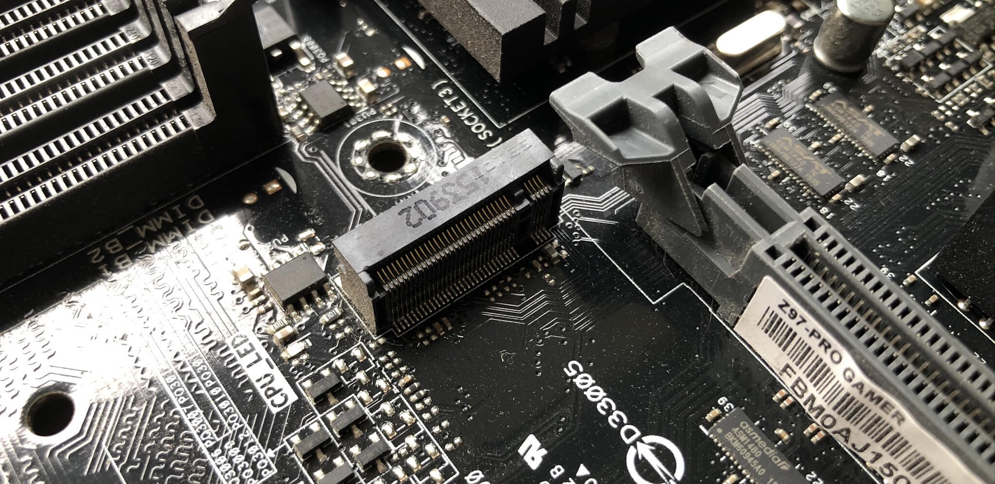 Le socket M.2, utilisé pour connecter le stockage SSD, utilise également le système rapide (avec le troisième emplacement PCI Express à 16 voies sur cette carte mère); cependant, sur certaines combinaisons CPU / carte mère, les sockets M.2 se connectent directement au CPU, car de nombreux produits récents ont plus de 16 voies PCIe à distribuer et à utiliser.