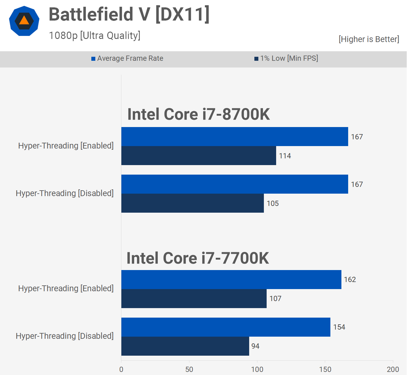 Cela dit, le 7700K avec ses noyaux moins nombreux ne souffre pas du même problème avec la technologie Hyper-Threading, bien qu’il soit encore plus rapide avec l’arrêt désactivé. Donc, au moins pour ce jeu, fonctionner sans Hyper-Threading n’est pas un problème et va probablement être bénéfique, mais pas si vous avez un dual-core.