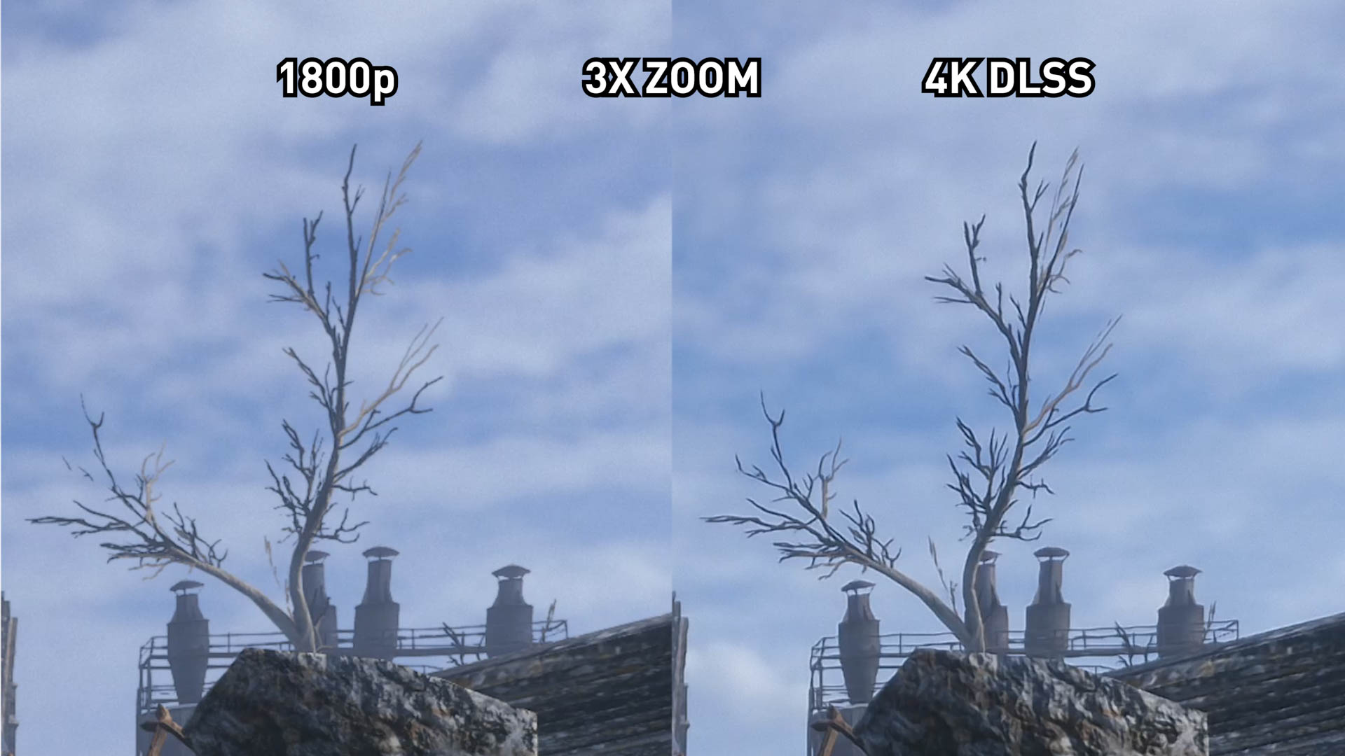 Et puis il y a des domaines où DLSS n'est pas aussi bon. Le 1800p supérieur a de meilleurs détails de texture fine dans certaines zones, ce qui représente plus fidèlement les textures réellement utilisées. DLSS, avec ses techniques de post-traitement visant à améliorer la netteté, peut donner une apparence bizarre à certaines textures. Vous remarquerez peut-être que nous n’avons pas effectué un zoom avant, c’est un artefact que nous avons repéré.