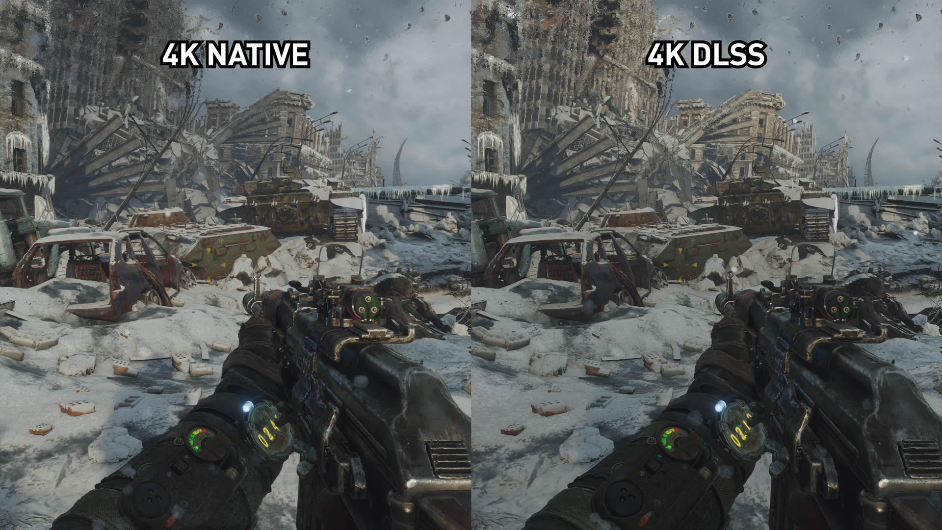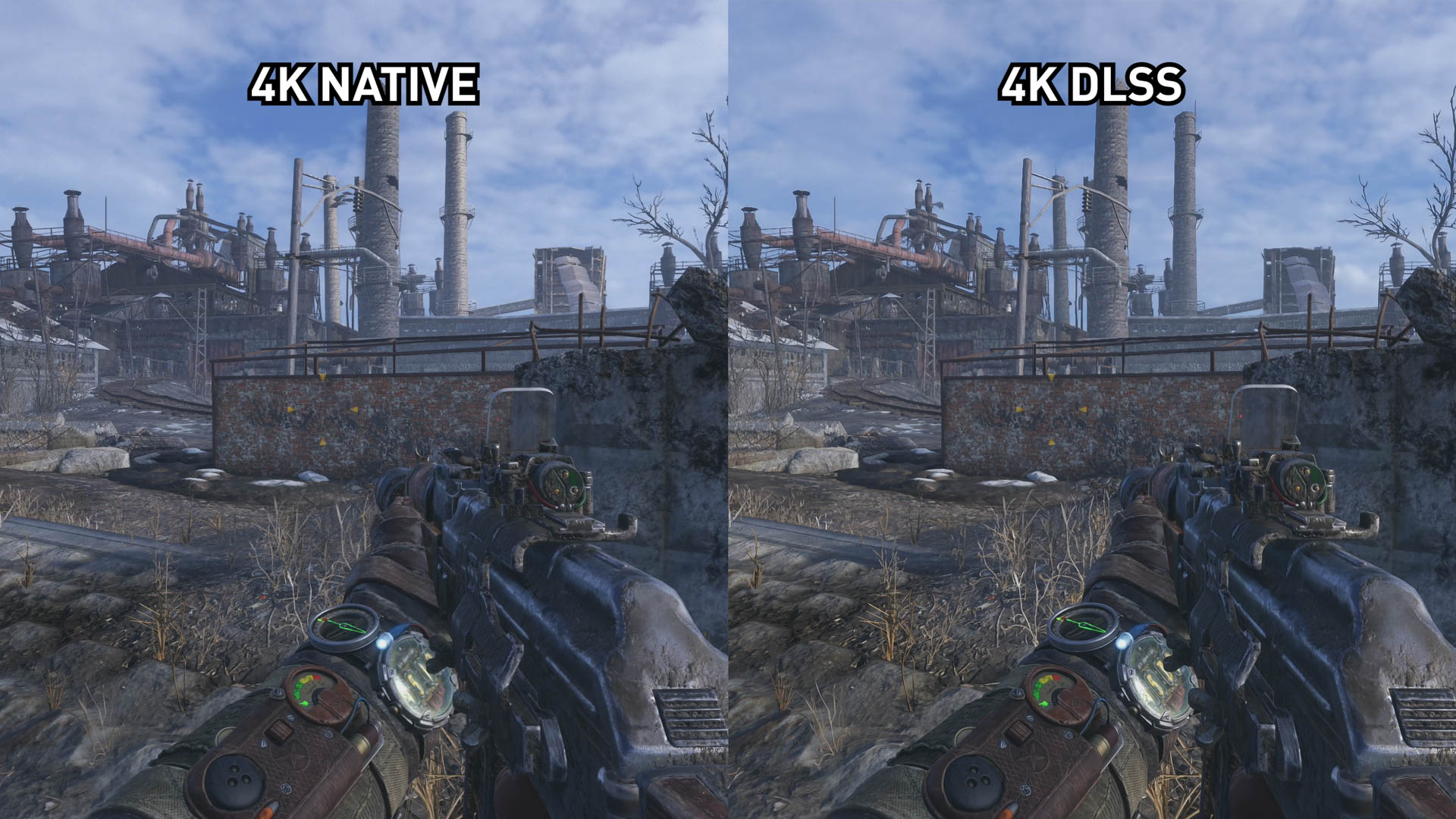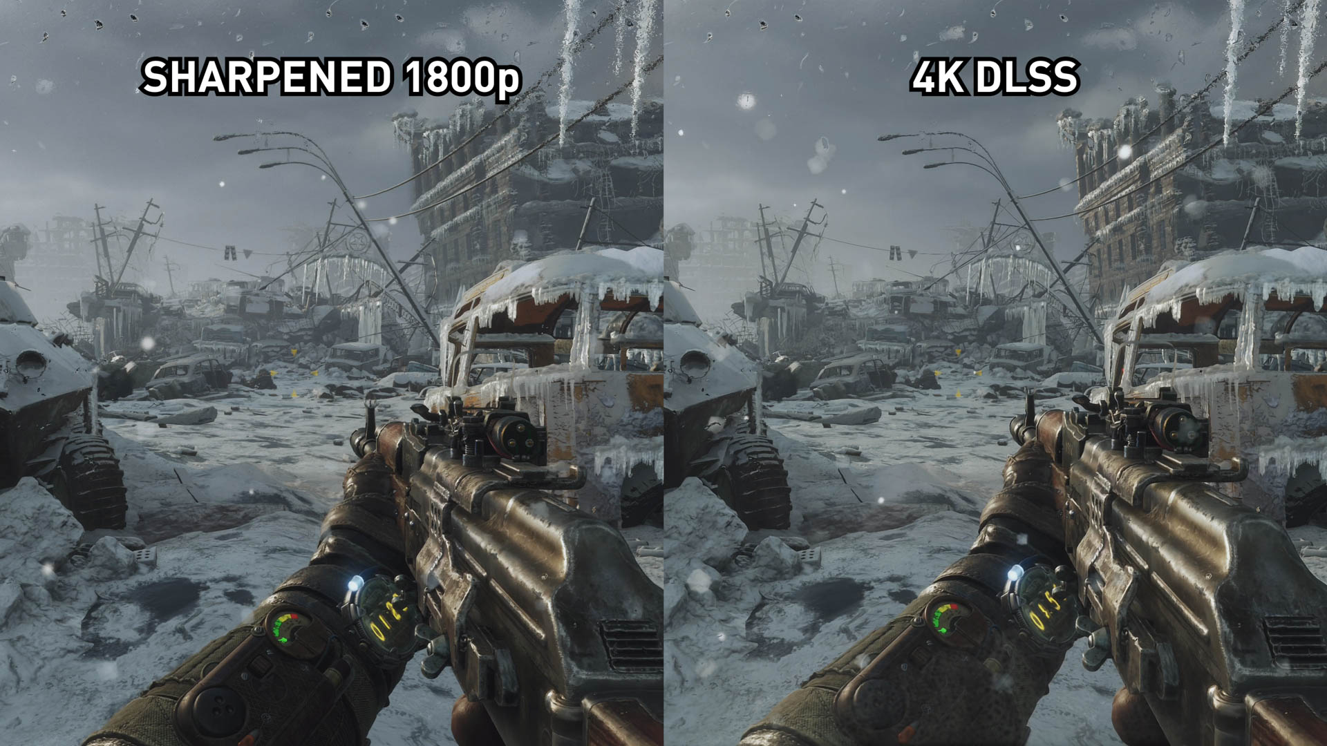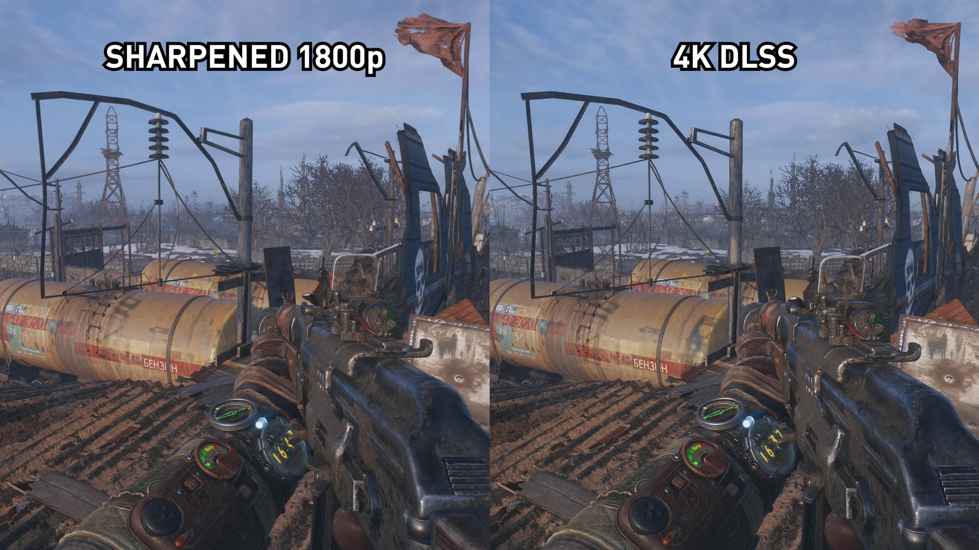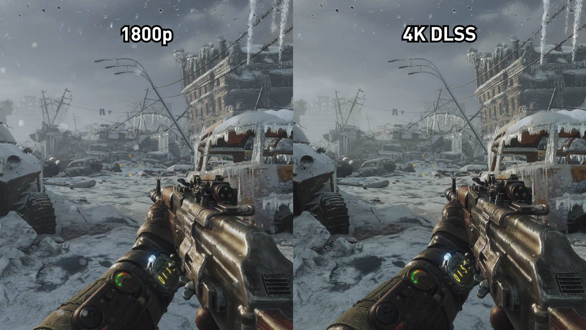 Avec Metro Exodus, l’une ou l’autre technique n’est pas gagnante. En fait, dans la plupart des scènes que nous avons capturées, les deux options sont extrêmement similaires. Les deux ne sont pas aussi bons que le rendu natif. Les deux ont une perte de netteté et de détail. Les deux sont un peu plus doux que le 4K natif.
