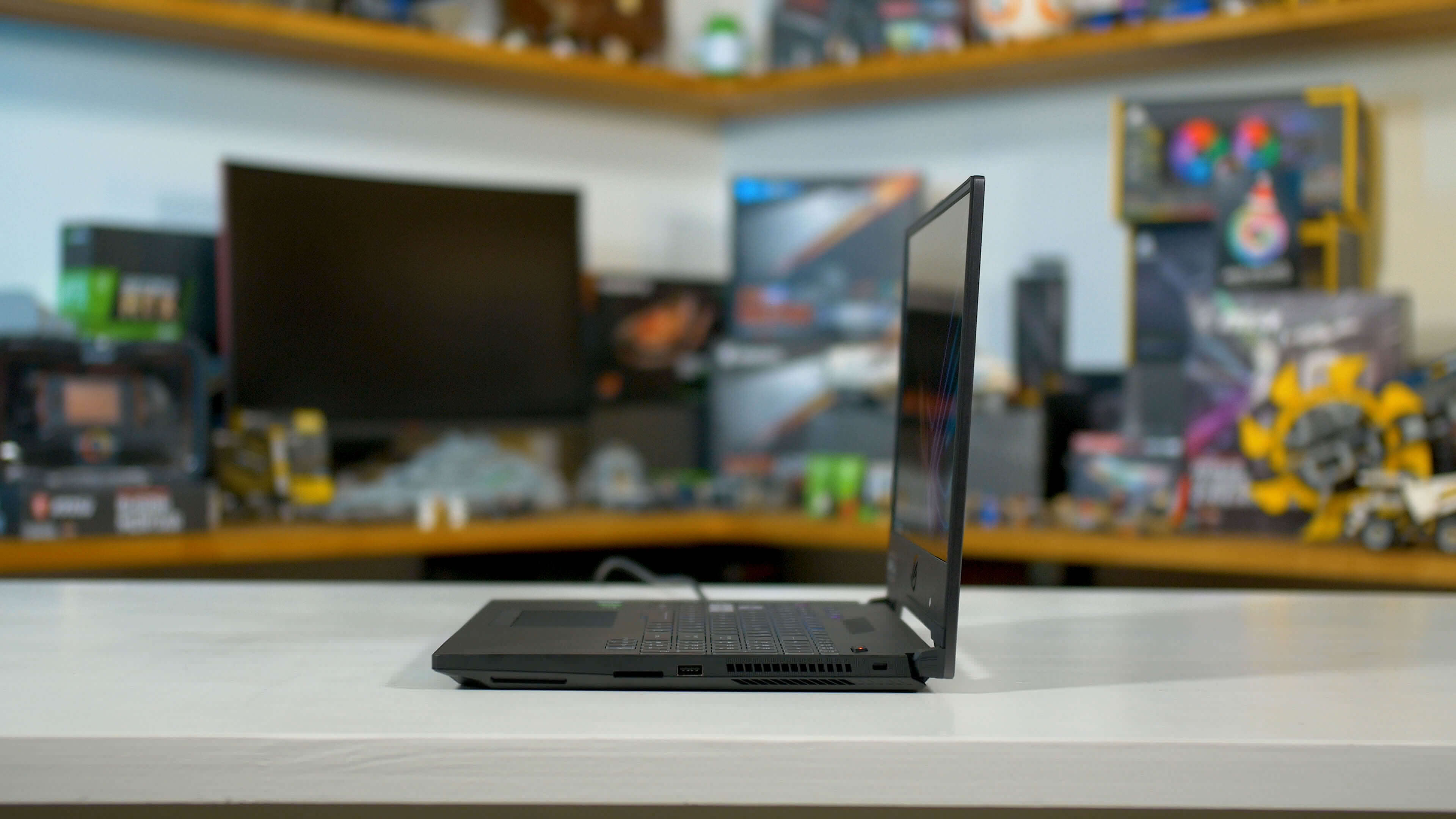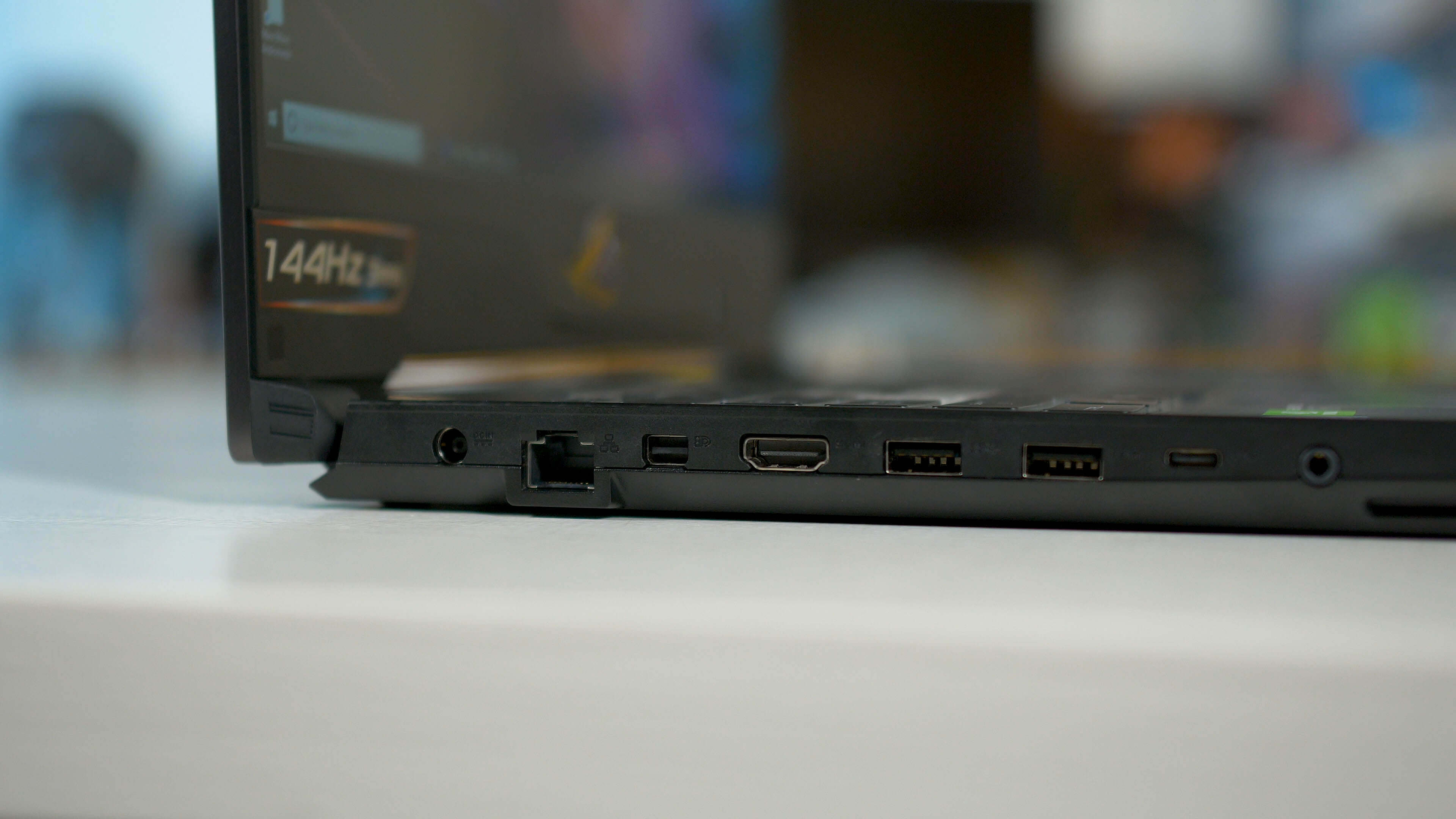 Le châssis est votre option de milieu de gamme typique: ce n’est pas un système mince et léger comme le Asus Zephyrus, mais ce n’est pas une grosse bête comme les modèles Big Boy Asus. Il mesure 26 mm d’épaisseur et pèse 5,3 lb, ce qui le rend portable sans entrer dans la catégorie des minces qui sont vendus à un prix plus élevé. La principale limitation de la portabilité sera la batterie plus petite de 62 Wh, contre près de 100 Wh avec des systèmes comme le Gigabyte Aero 15.