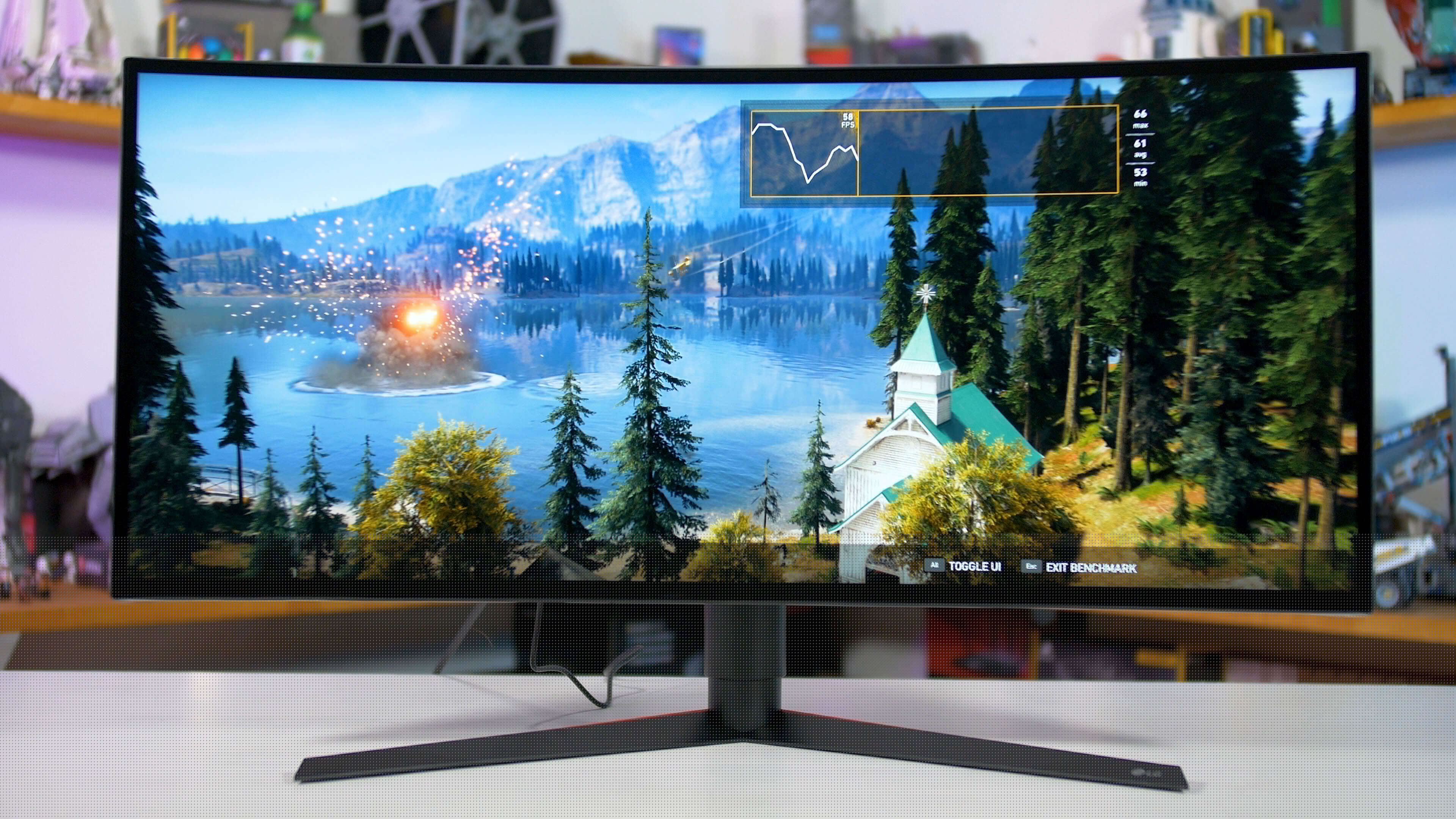Le dernier écran que nous avons testé est l’ultra 34GK950F, un moniteur IPS de 34 pouces avec une résolution de 3440 x 1440, une fréquence de rafraîchissement maximale de 144 Hz et une prise en charge HDR. C’est un autre moniteur LG qui prend en charge FreeSync 2, bien que ce ne soit pas une fonctionnalité que vous pouvez utiliser avec les GPU Nvidia. Vous pouvez toujours utiliser la synchronisation adaptative et le disque dur en même temps. Vous ne pouvez pas activer FreeSync 2 dans les jeux qui le prennent en charge comme Assassin’s Creed Odyssey, car cette fonctionnalité est exclusive aux GPU AMD.