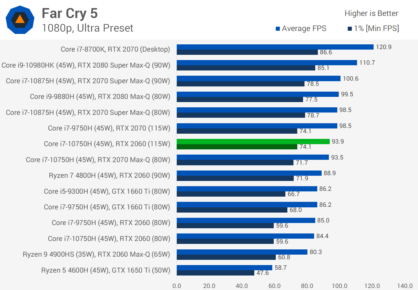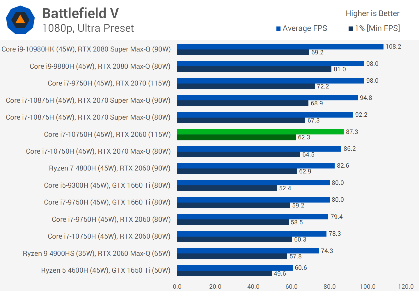 Il convient également de noter qu'en raison du fonctionnement des configurations d'ordinateurs portables, nous ne pouvons pas comparer directement, par exemple, le RTX 2080 Super avec le RTX 2060 avec le même processeur. Habituellement, les fabricants dictent la façon dont les processeurs et les GPU sont couplés.Par conséquent, à des fins pratiques, ces références vous montreront une comparaison réaliste des performances des modèles d'ordinateurs portables tels qu'ils sont généralement vendus.