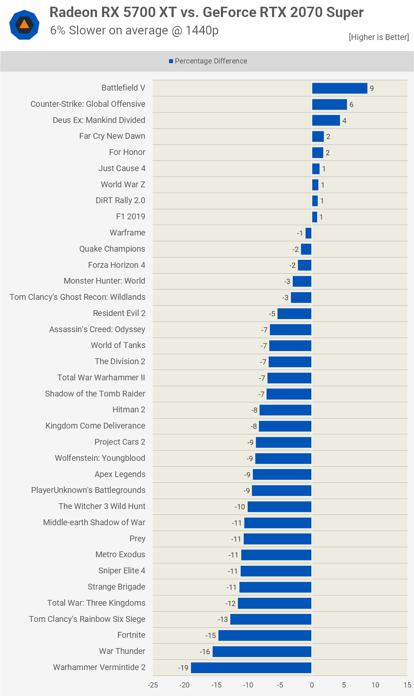 Globalement, le 5700 XT est très percutant à 1440p et nous pensons qu’il est juste de dire que le 5700 XT élimine le RTX 2060 Super et qu’il fait presque la même chose que le 2070 Super, mais le fait que le 2070 Super ait été plus rapide d’une marge remarquable environ une douzaine de jeux testés, signifie que c'est une option intéressante pour ceux qui recherchent des performances supplémentaires. Si vous jouez exclusivement des titres tels que Battlefield V, CS: GO, Deus Ex Mankind Divided, Far Cry New Dawn, For Honor, Just Cause 4, World War Z, DiRT Rally 2, F1 2019, Warframe et environ une demi-douzaine d'autres titres. que nous avons testés, le 2070 Super est beaucoup moins sensé.