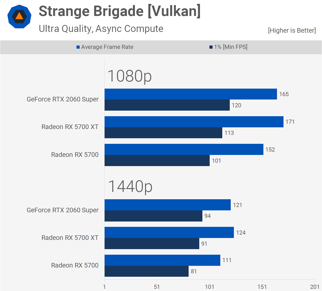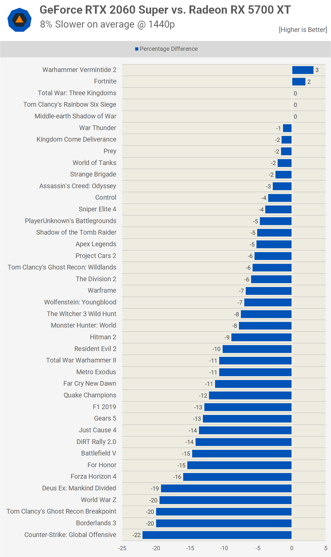 Ce n'était pas proche. Cependant, nous sommes impatients de voir comment le 5700 XT et le 2060 Super s’empilent au cours des 41 matchs. Pensez à la GeForce était seulement ~ 4% plus rapide que la norme dans notre comparaison 5700 récente.