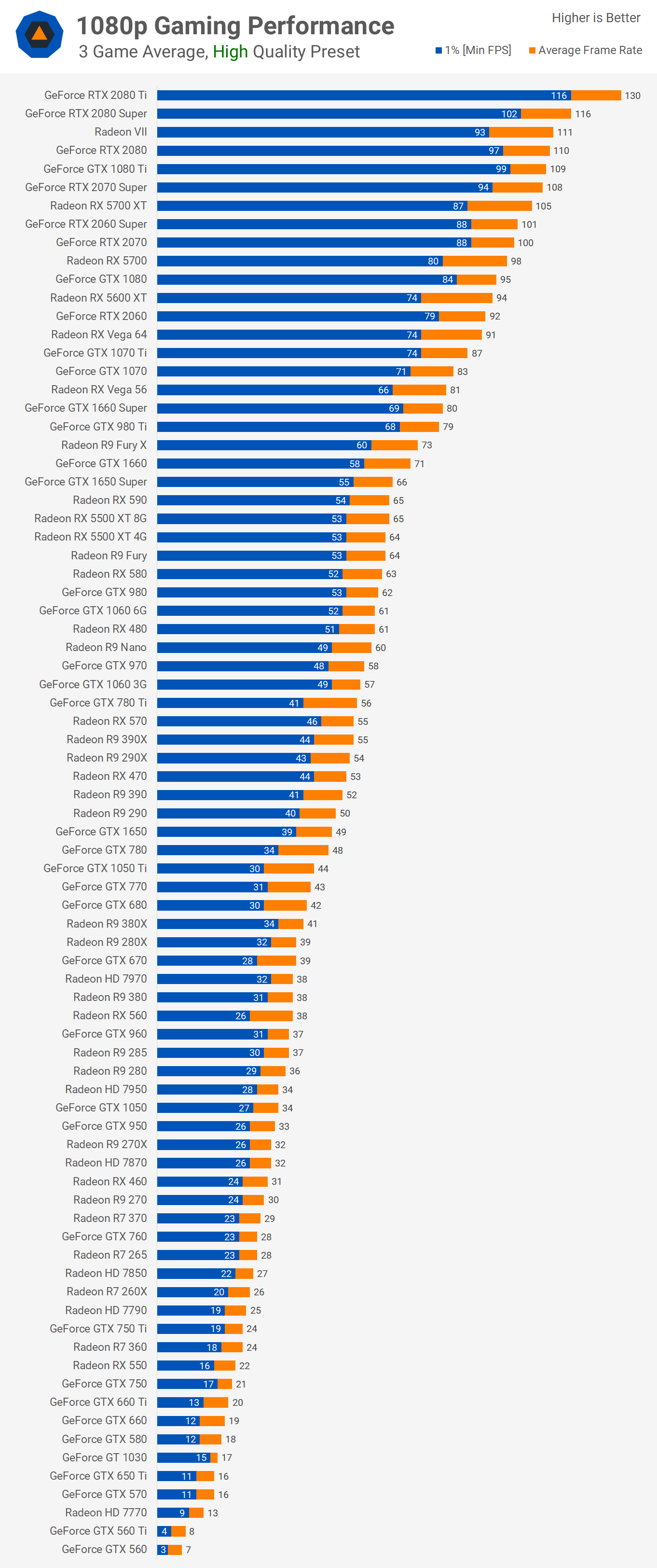 Au total, 43 cartes graphiques ont fait la coupe. Les marges observées dans les graphiques entre les différents GPU AMD et Nvidia sont ce que vous trouverez généralement sur un large éventail de jeux, mais encore une fois, il existe de nouveaux titres qui punissent certains de ces anciens GPU et nous y reviendrons dans un instant. , pour l'instant passons à l'analyse des coûts.