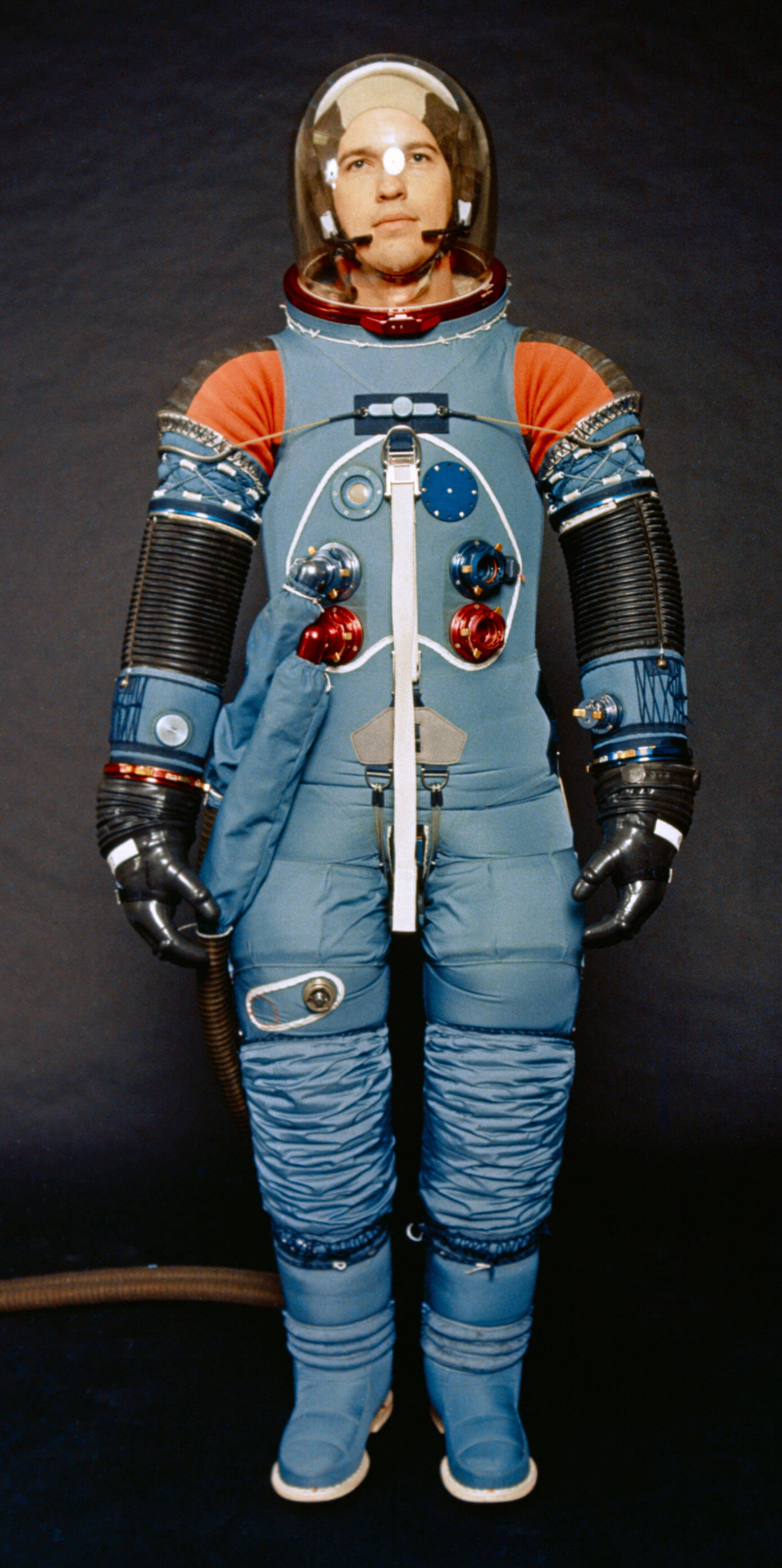 Il peut sembler un peu étrange de considérer la combinaison spatiale de la même manière que le CSM / LM, mais leur fonction était très similaire: maintenir l’équipage en vie dans l’espace. Ils comprenaient plusieurs systèmes, avec des couches pour le refroidissement – à la lumière directe du soleil, les températures sur la Lune peuvent atteindre 250 ° F / 120 ° C – une protection contre les micrométéorites et les roches lunaires brutes, et un récipient sous pression permettant de faire face au manque d'atmosphère. .