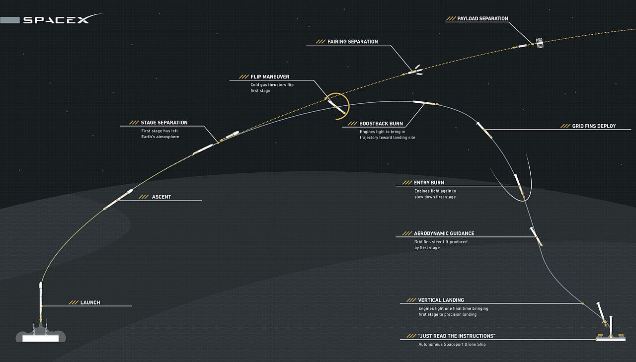 Une fois qu'une fusée normale a atteint l’altitude désirée (elle l’atteint par un effort constant d’équilibrage de la poussée ascendante) et déployé sa charge utile, le vol est terminé. Pour une fusée Falcon, ce n’est que la moitié du trajet: elle doit retourner sur Terre.