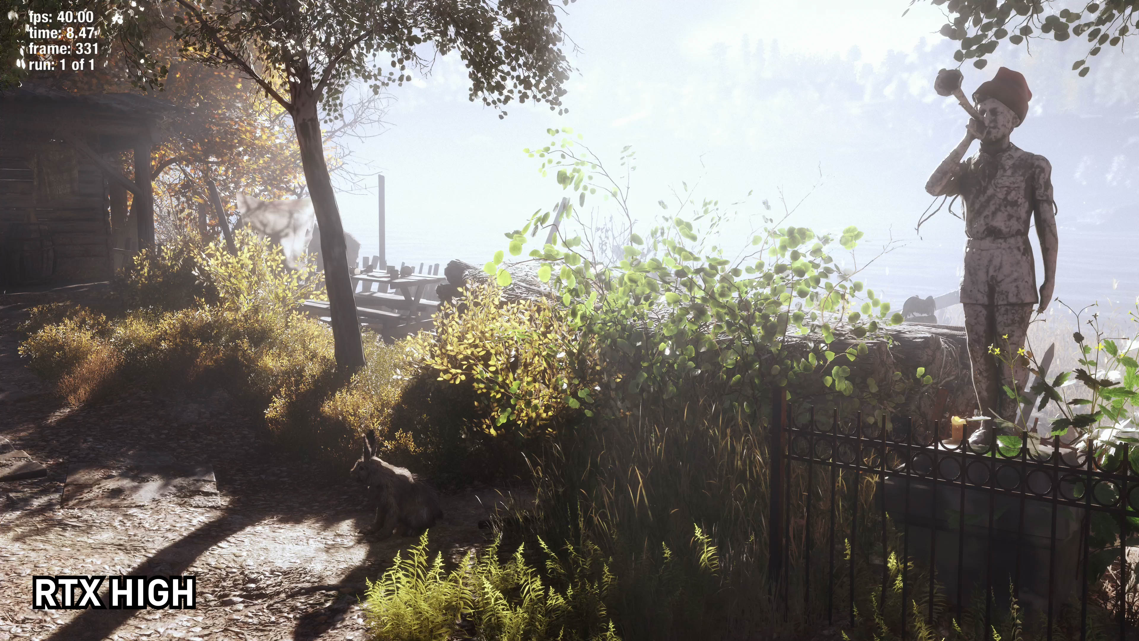 Dans cette scène, vous pouvez immédiatement voir les différences entre RTX activé et RTX désactivé. La scène a plus de profondeur et de réalisme pour le système d'éclairage. Cela n’apparaît peut-être pas évident au début, mais lorsque l’éclairage global est désactivé, certaines zones de la scène sont éclairées là où elles ne devraient pas être.