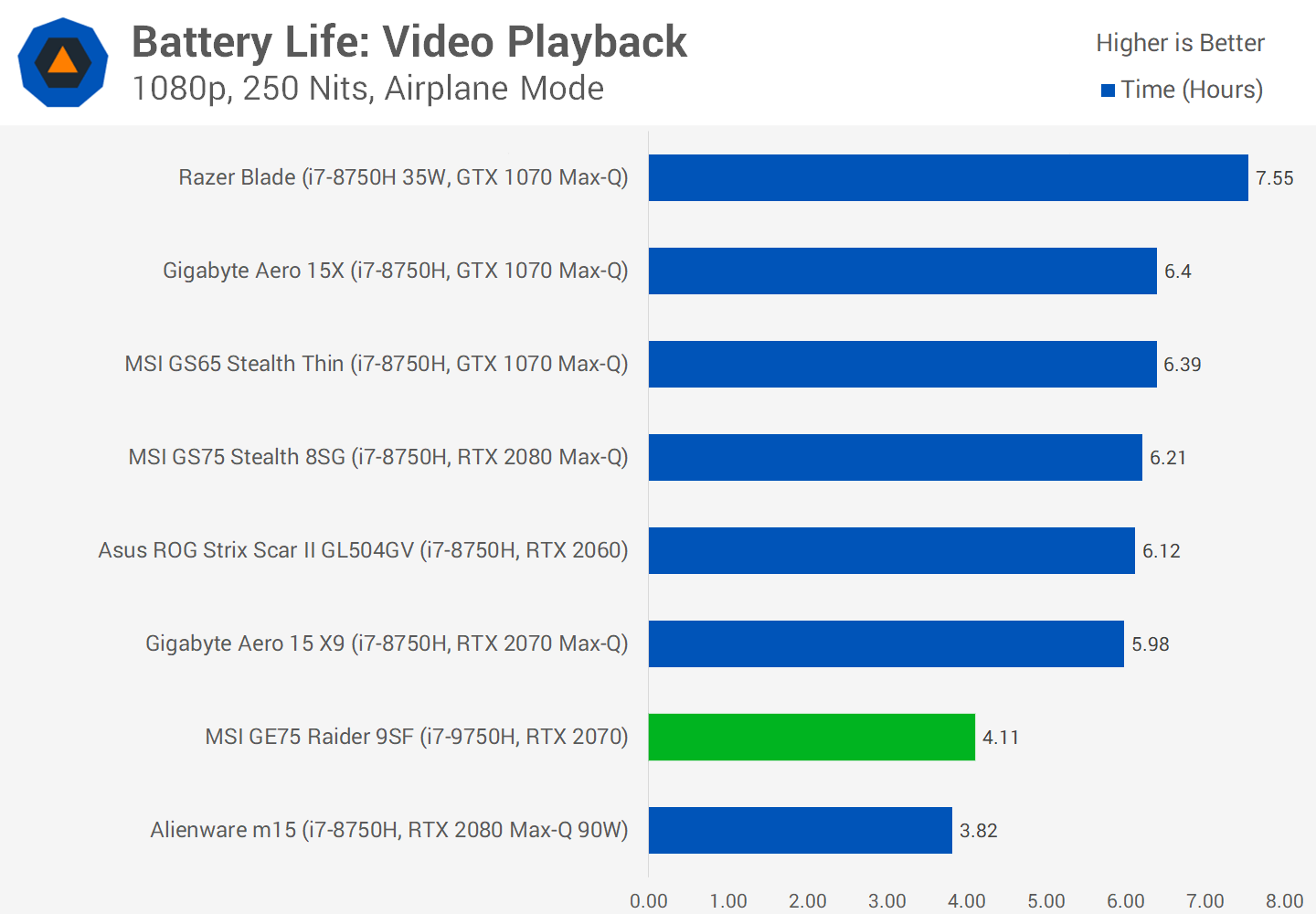 Cela dit, les fabricants d’ordinateurs portables de la génération actuelle continuent d’être les plus vieux des ordinateurs portables Pascal. Étant donné que le Core i7-9750H n'offre aucun gain tangible par rapport au 8750H, il reste encore quelques achats décents de dernière génération. Bien que les ordinateurs portables MSI GE75 et RTX 2070 soient un bon achat parmi la génération actuelle, si vous pouvez obtenir un ordinateur portable GTX 1070 avec un 8750H pour moins de 1 600 dollars, vous serez très heureux. Il va sans dire que les ordinateurs portables Pascal ne seront pas toujours présents et qu'ils ne sont pas tous très rentables.