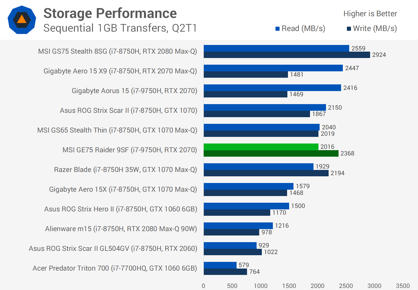 MSI a chargé notre unité d’examen d’un SSD Samsung PM981 de 1 To, bien que 512 Go soit standard. Les performances de ce disque SSD sont excellentes et dépassent ce qui est nécessaire pour les jeux.
