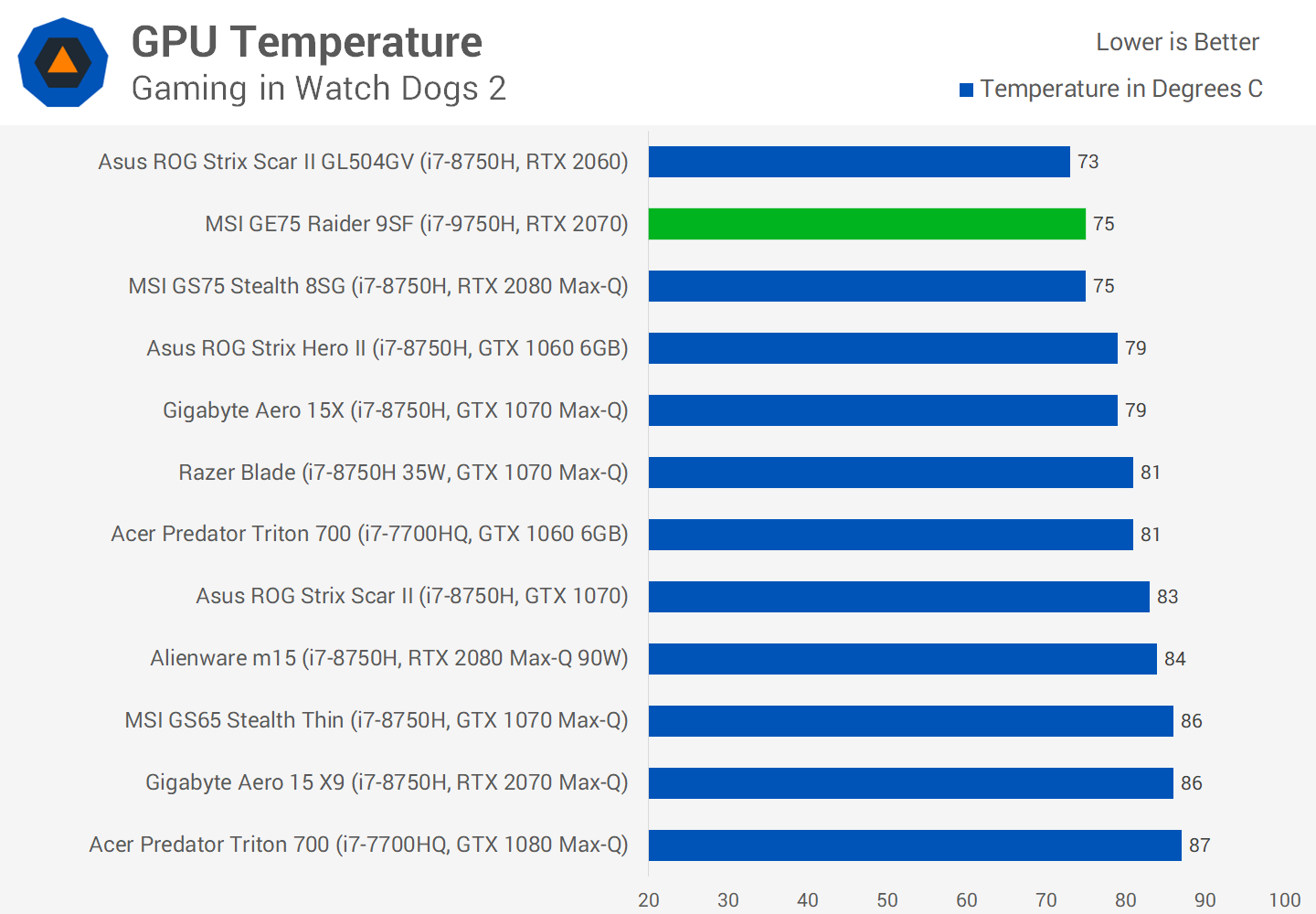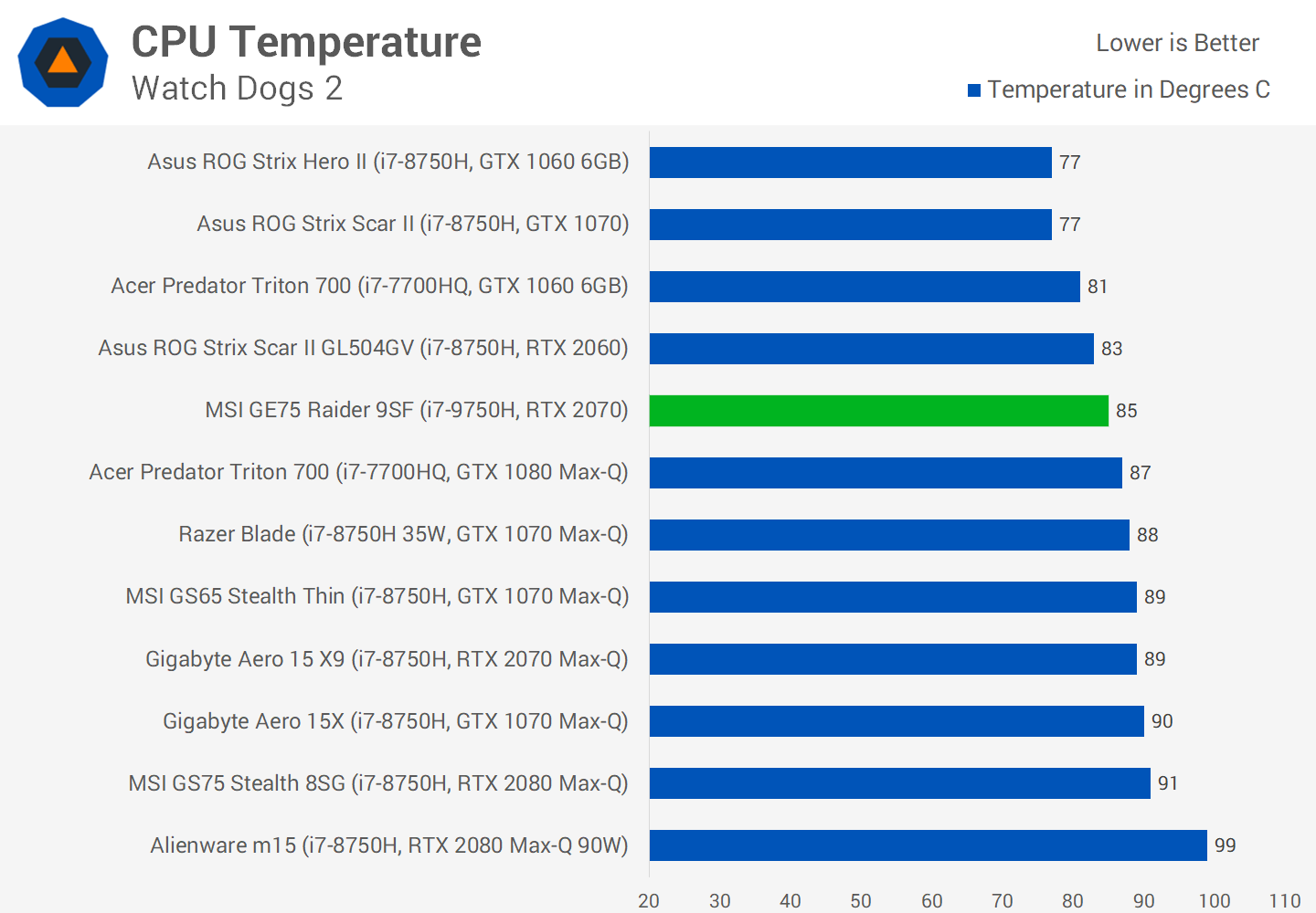 Il illustre également la différence et l’avantage d’obtenir une unité de taille moyenne telle que la GE75 par rapport à une unité mince et légère telle que la GS75 du point de vue des performances: il ya tout simplement plus d’espace pour le refroidissement, ce qui signifie que l’ordinateur portable peut accueillir un processeur graphique TDP plus élevé. cela conduit à de meilleures performances.