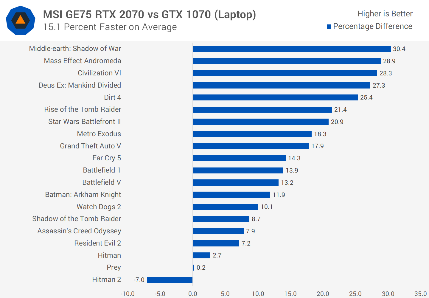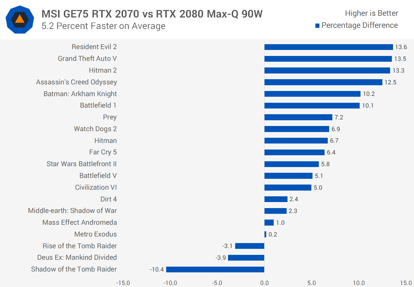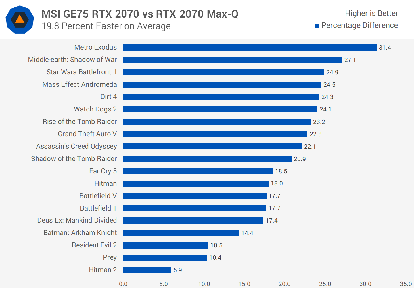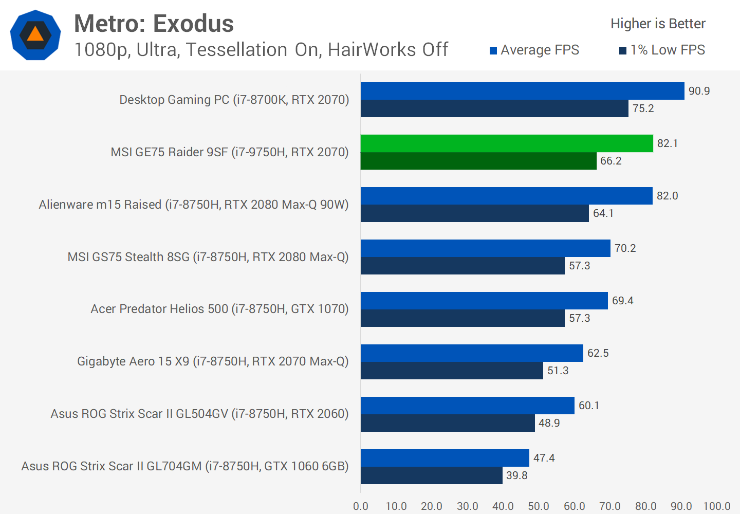 Laissons de côté nos performances et nous commencerons avec ce résultat impressionnant par rapport au RTX 2080 Max-Q. Cela montre à quel point le RTX 2080 Max-Q est sous-exploité, même la version 90W la plus rapide perdant au profit du RTX 2070 dans le MSI GE75, le 2070 devançant de 5% en moyenne.