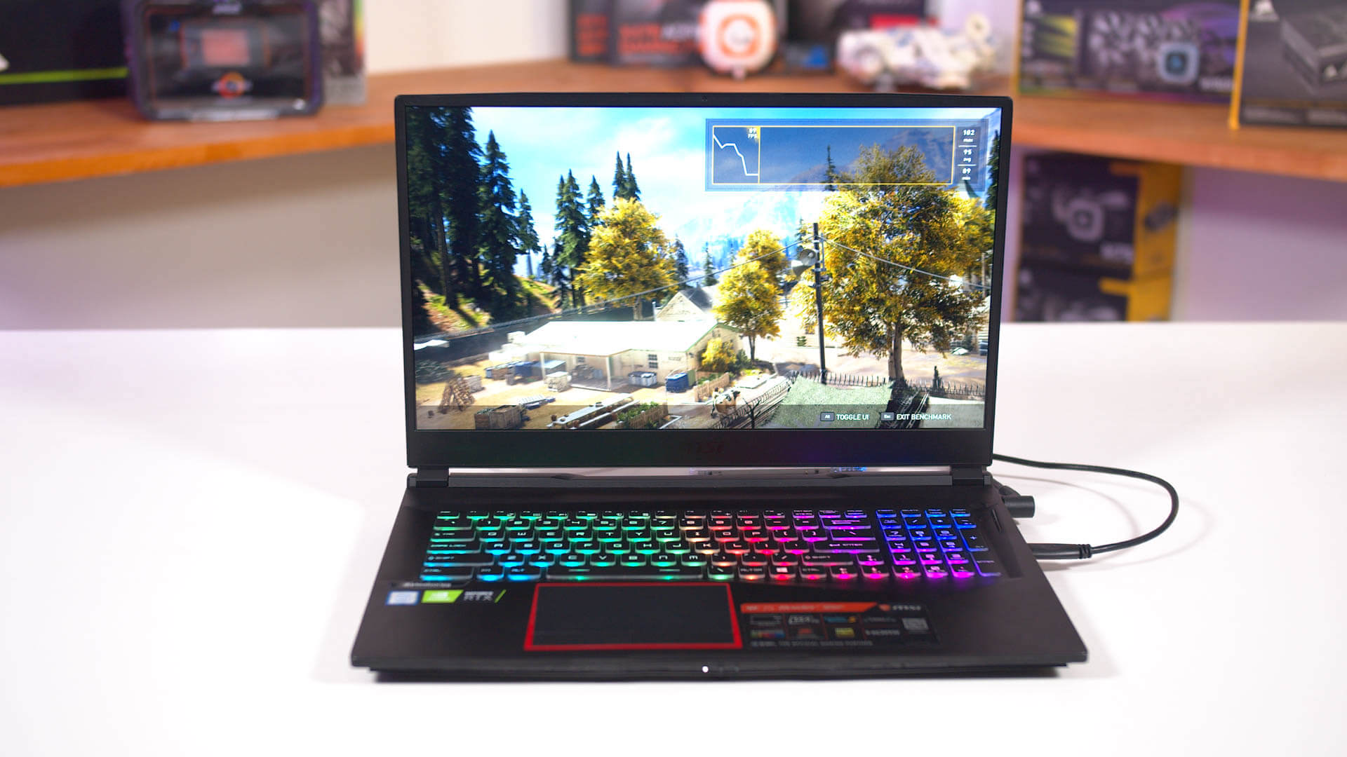 Le GE75 nous a davantage impressionnés par les performances du Nvidia GeForce RTX 2070. Notez que le RTX 2070 pour ordinateurs portables n’est pas le même que le processeur graphique de bureau. En fait, nous avons consacré une analyse complète pour comparer les deux où le PC de bureau gagne par environ 20 pour cent.