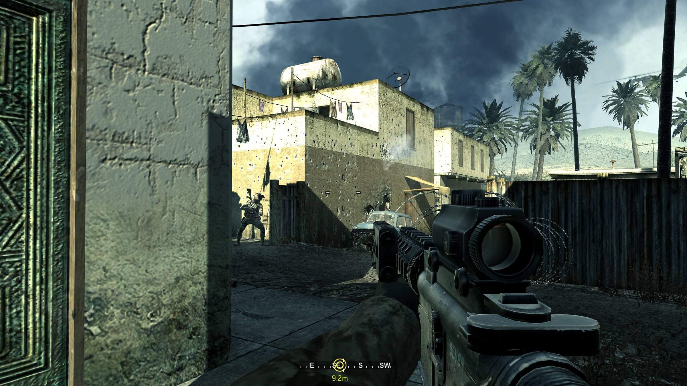 Cela dit, une situation similaire peut également être observée dans l'une des plus grandes sorties de jeux de 2007: Call of Duty 4: Modern Warfare. Ce jeu, situé dans le monde réel et moderne, a été développé par Infinity Ward et publié par Activision, en utilisant un moteur qui était à l'origine basé sur id Tech 3 (Quake III Arena). Les développeurs l'ont adapté et fortement personnalisé, jusqu'à ce qu'il soit capable de rendre des graphiques reprenant tous les mots à la mode de l'époque: bloom, HDR, auto-ombrage, éclairage dynamique et cartographie des ombres.