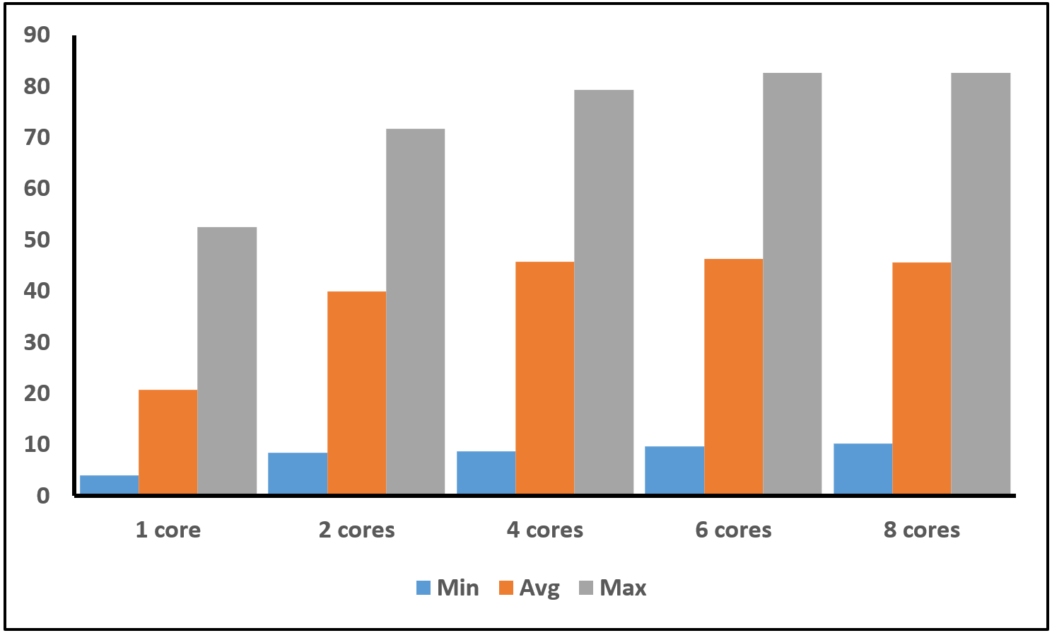 Cependant, relancer les tests, mais cette fois en limitant le nombre de cœurs disponibles dans le BIOS de la carte mère, raconte une autre facette de l'histoire.