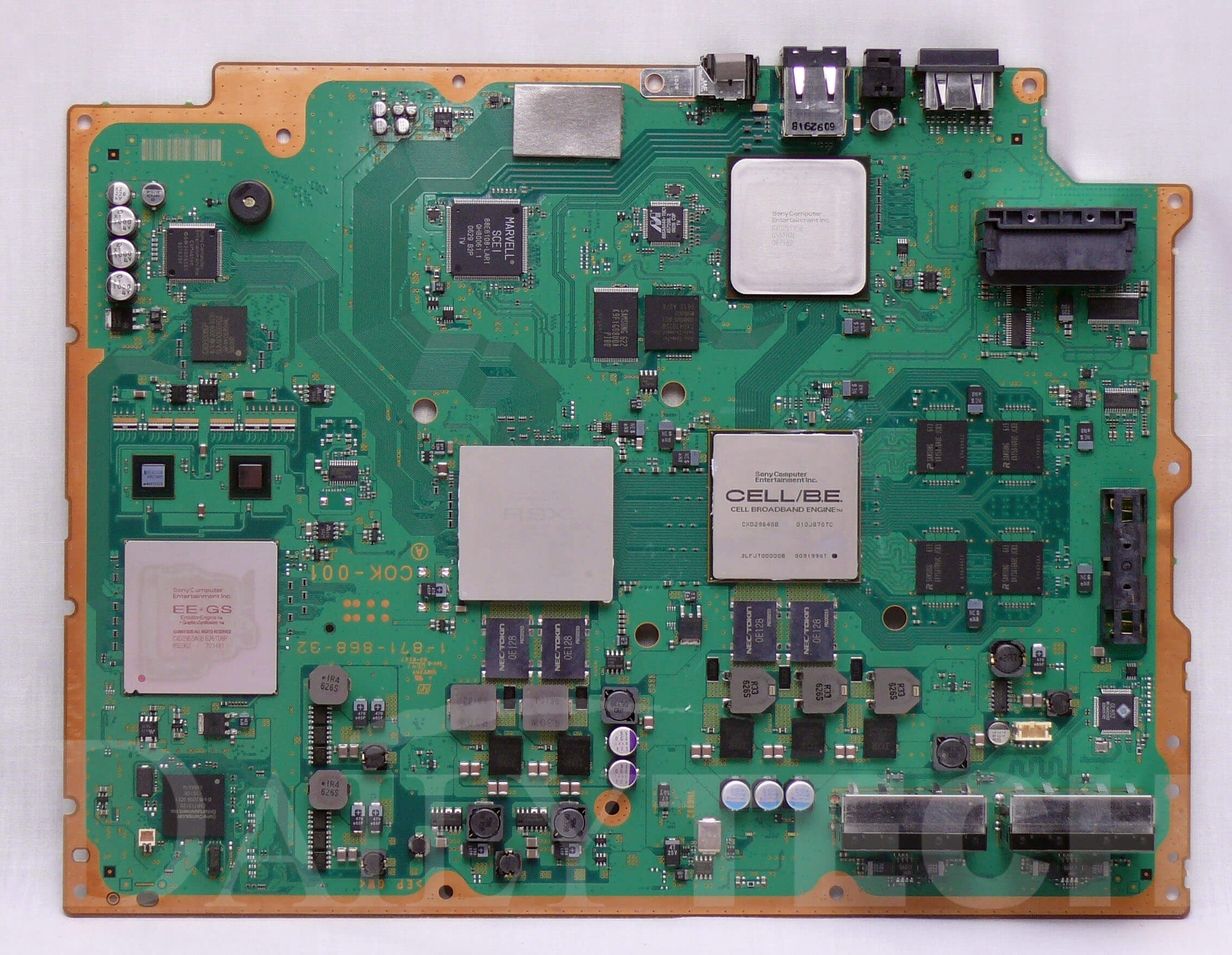 La machine de Sony arborait un GPU Nvidia assez régulier (une GeForce 7800 GTX modifiée), mais le processeur était tout sauf standard. Développé conjointement par Toshiba, IBM et Sony, le processeur Cell avait également un cœur PowerPC, mais également emballé dans 8 coprocesseurs vectoriels à l'intérieur.