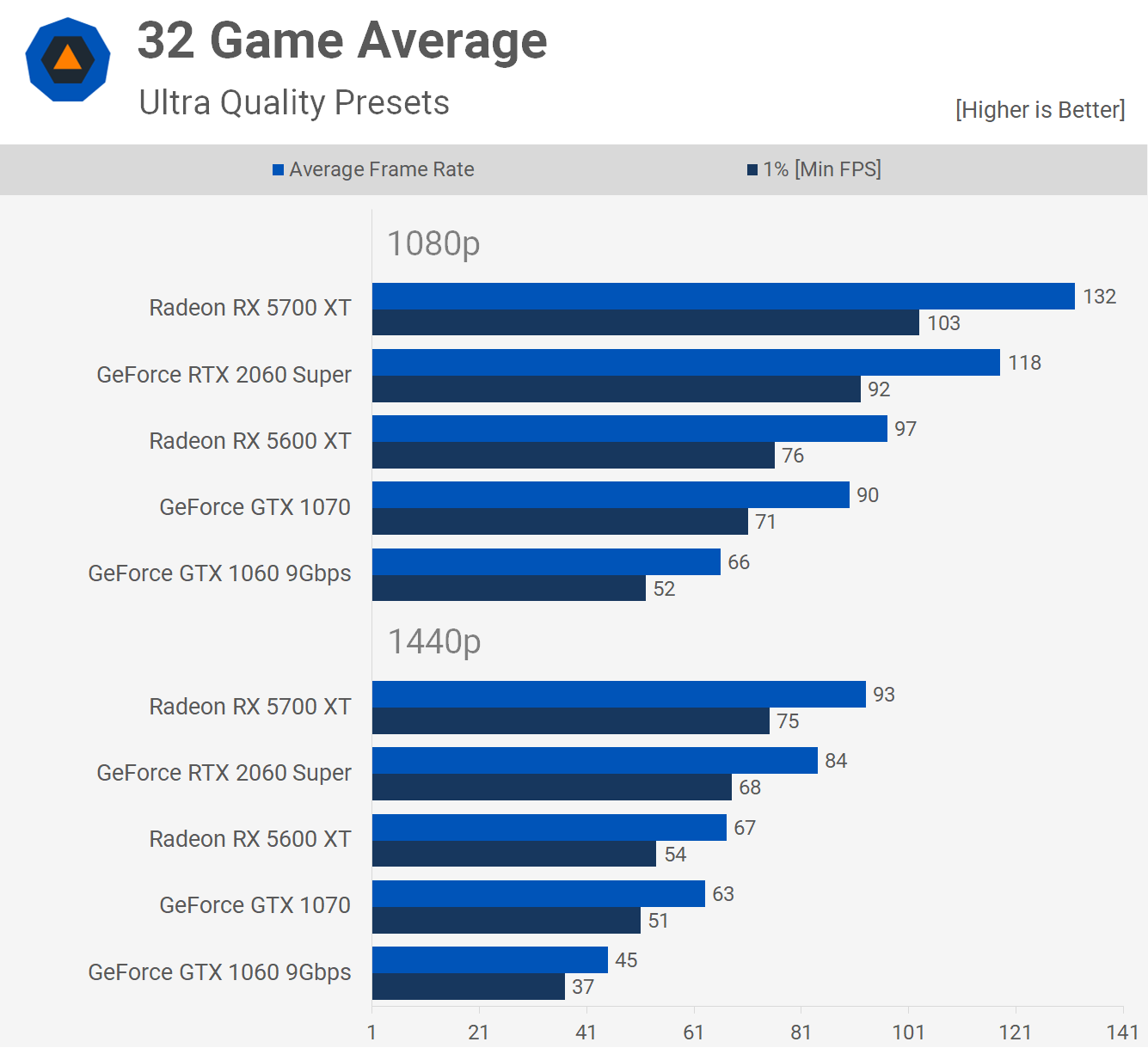 Radeon RX 5600 XT contre GeForce GTX 1060 en 32 matchs à 1440p