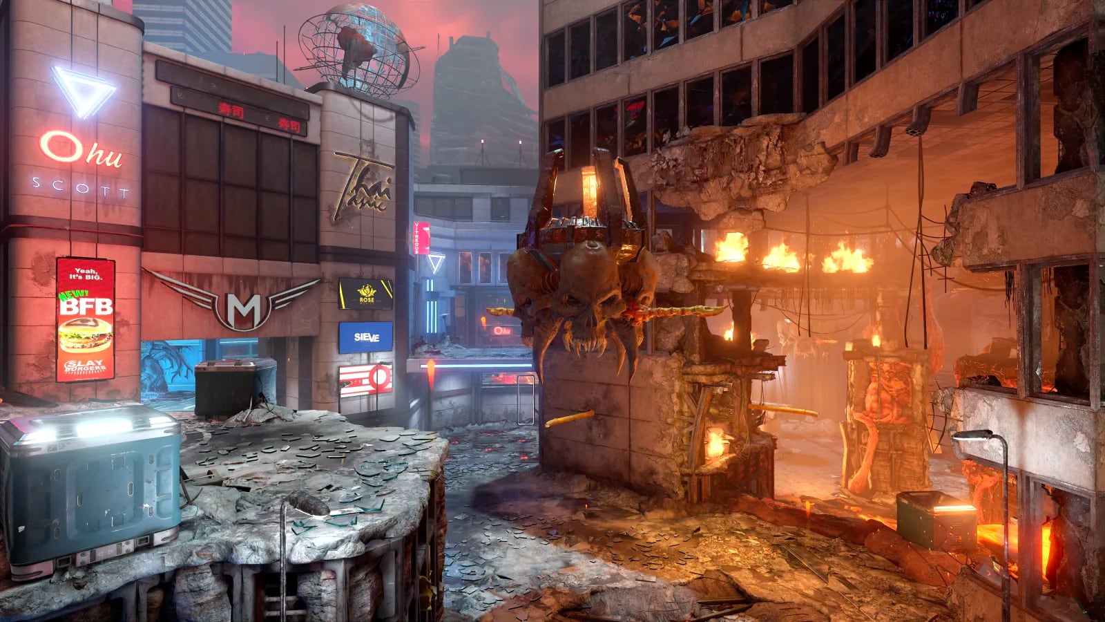 Doom Eternal a été construit sur id Tech 7, la dernière itération d'id Software de leur impressionnant moteur de jeu interne. Le moteur id Tech 7 est exclusivement basé sur Vulkan, ce qui signifie qu'OpenGL a été abandonné, ce qui a permis aux développeurs de se concentrer entièrement sur cette API. Le nouveau moteur présente dix fois les détails géométriques de son prédécesseur (utilisé en 2016 dans Doom et Wolfenstein II: The New Colossus) ainsi qu'une fidélité de texture plus élevée. L'amélioration de l'immersion est un nouveau système appelé «démons destructibles» qui, comme son nom l'indique, voit les corps des ennemis se détériorer à mesure qu'ils subissent des dégâts. Le jeu offre une prise en charge HDR appropriée et les capacités d'éclairage global ont été améliorées.