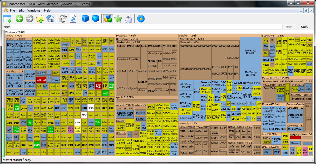 SpaceSniffer est un outil d'analyse de l'utilisation de disques graphiques qui vous aide à visualiser comment les fichiers et les dossiers sont stockés sur un lecteur via une interface minimale. Plus précisément, il utilise le concept de treemap développé par Ben Shneiderman. L’analyseur de logiciel gratuit offre une prise en charge par glisser-déposer, des éléments de zoom, un filtrage, une prise en charge des flux de données alternatifs NTFS, etc. Je viens de l'exécuter sur mon disque dur de sauvegarde et, si rien d'autre, il offre un aperçu fascinant de la structure du disque et peut même faciliter la découverte de fichiers et de dossiers enfouis dans des zones que je ne regarderais peut-être pas autrement.