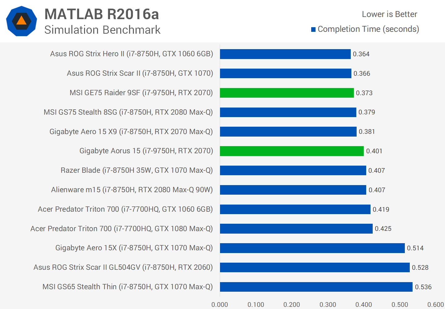 MATLAB ne bénéficie pas du Core i7-9750H par rapport au Core i7-8750H. Même performance en fonction des deux systèmes que vous comparez directement.