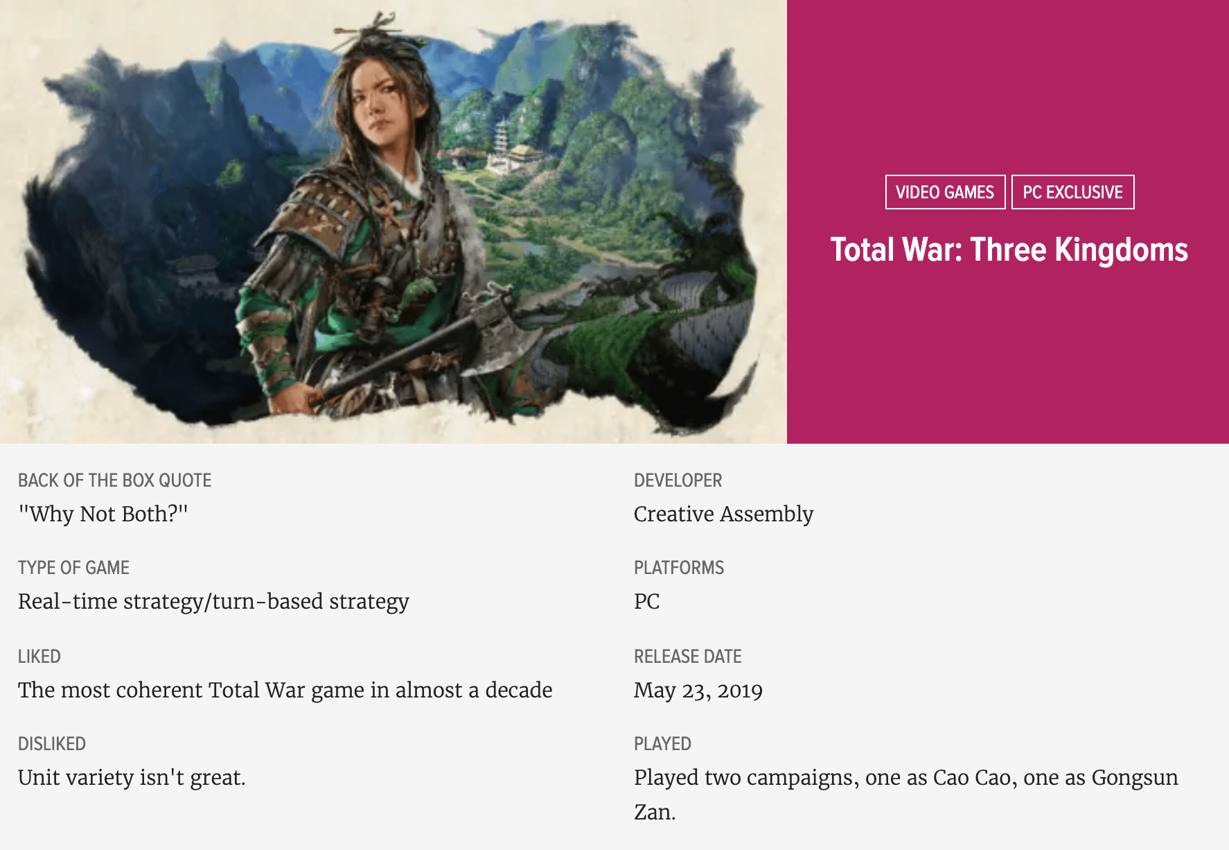 Depuis Rome 2sortie décevante en 2013, il se sent comme le Guerre totale série a été perdue et à la recherche de quelque chose. De Attila et Les Trônes de Britannia bricoler à la Warhammer L’explosion de la personnalité des jeux a fait l’objet d’une expérimentation sauvage entre titres. Trois Royaumes est l'aboutissement de cette aventure.
