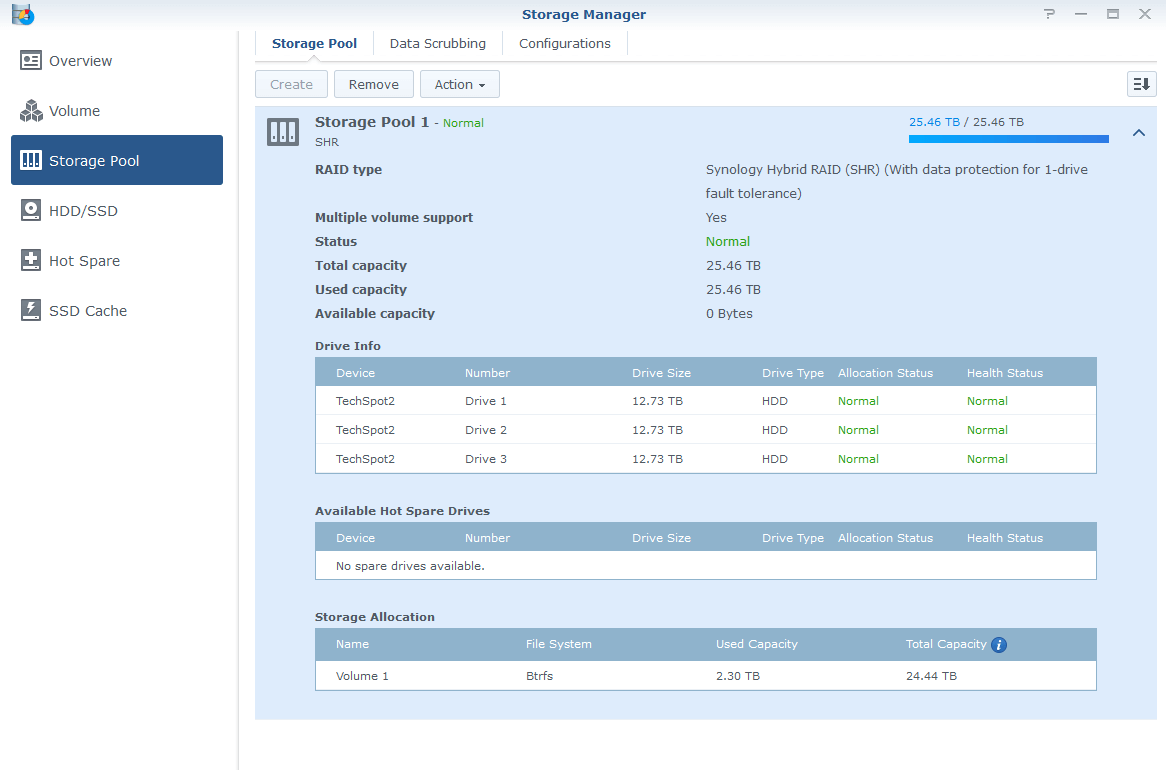 Lorsque vous allumez un NAS pour la première fois, vous devrez initialiser les disques. Les nouveaux disques devront être formatés et approvisionnés pour pouvoir être utilisés. Vous connaissez peut-être les systèmes de fichiers NTFS, FAT et Ext4 utilisés par Windows et Linux, mais ils ne sont pas vraiment conçus pour les baies de stockage plus volumineuses. Une fois que vous commencez à atteindre des dizaines de téraoctets, vous avez besoin d'un système de fichiers spécialement conçu pour les gros volumes. Dans le cas de Synology, ils utilisent Btrfs.