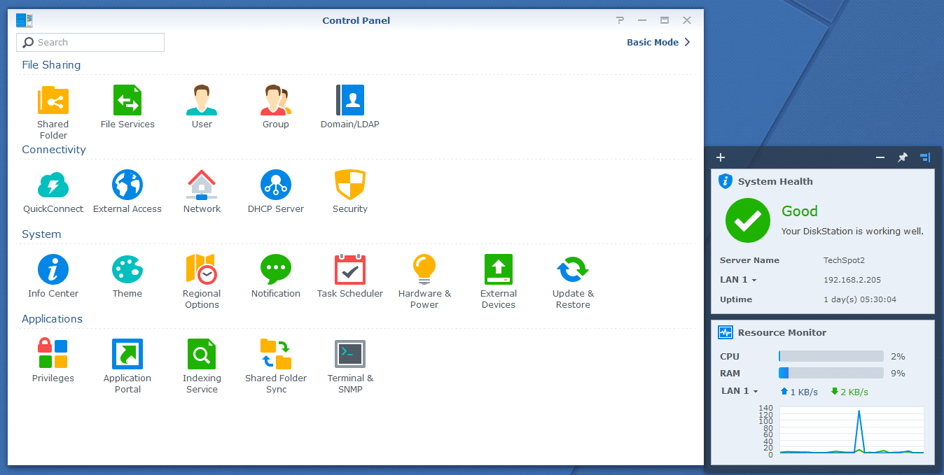 Toutes les unités NAS commerciales ont une interface utilisateur de gestion et cette couche logicielle est l'un des éléments les plus pratiques d'un système moderne. Dans le cas de Synology, ils ont un système Web bien conçu. La connexion via un navigateur affiche l'ensemble du système d'exploitation. Il a un bureau, des icônes et des fenêtres comme tout autre système d'exploitation. À partir d'ici, vous pouvez configurer la matrice de stockage ainsi qu'un large éventail d'autres fonctionnalités.