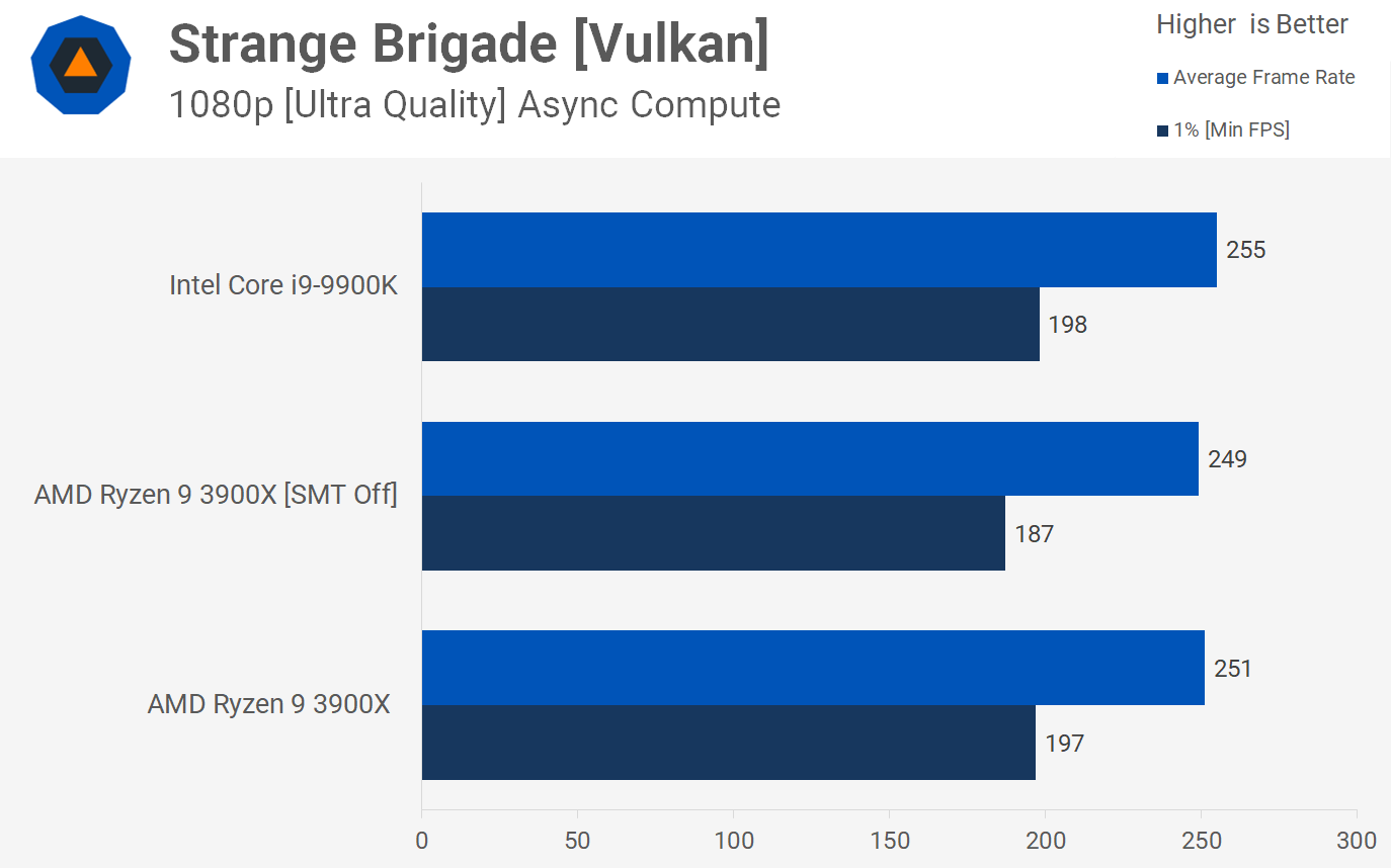 Les tests avec Strange Brigade montrent une modification de moins de 1% de la fréquence d'images moyenne, bien que nous constations une réduction de 5% pour le chiffre inférieur de 1%. Donc, vous voudrez laisser SMT activé pour ce titre.