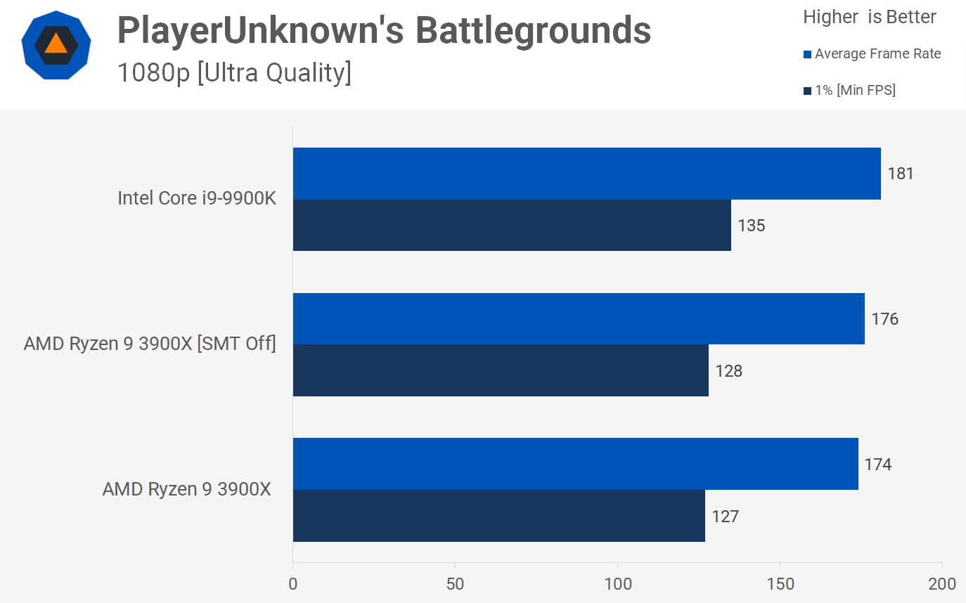 Les champs de bataille de PlayerUnknown ne voient pas plus d’un changement de performance de 1% avec SMT désactivé donc rien à voir ici.
