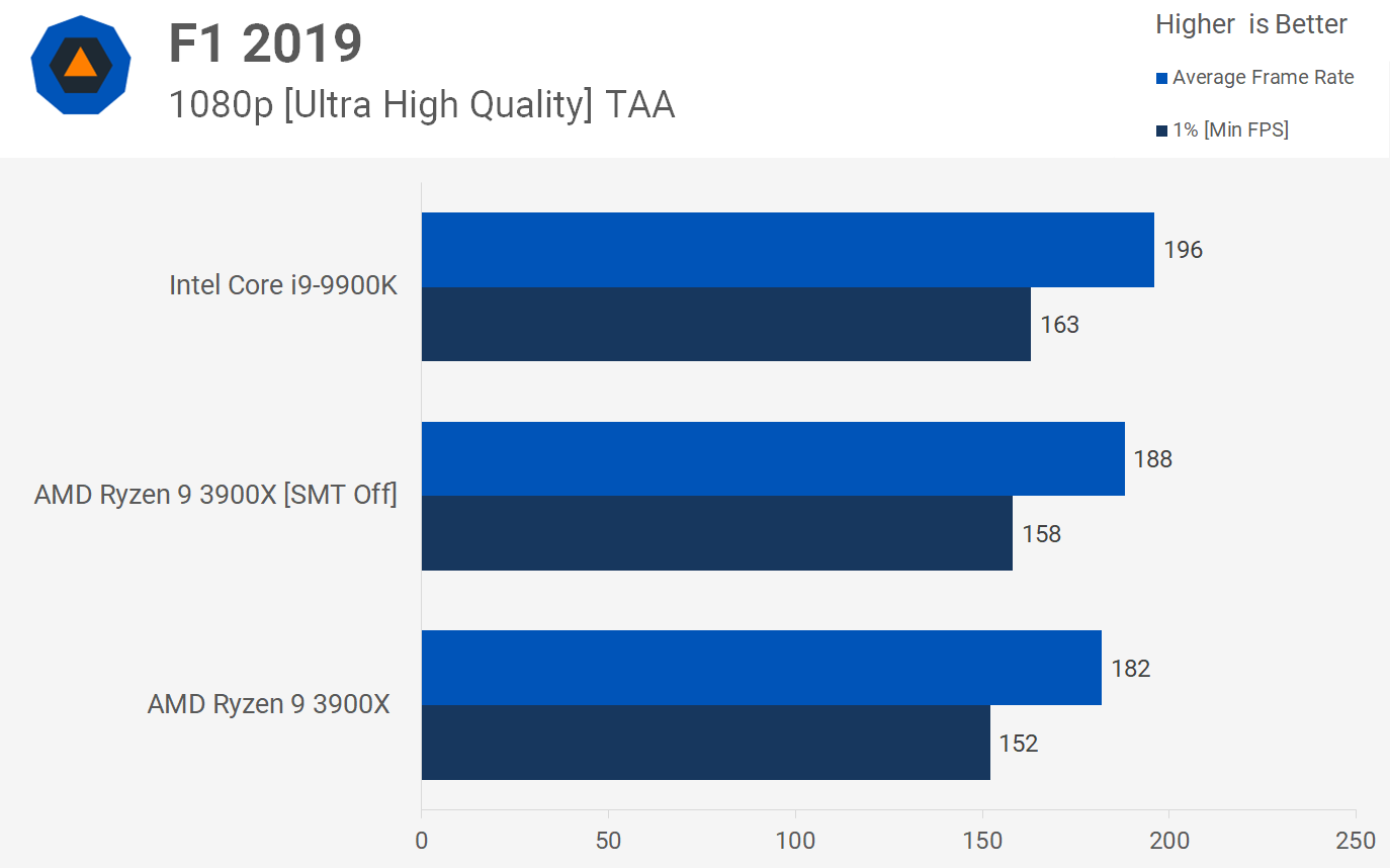La F1 2019 voit une légère amélioration des performances avec SMT désactivé.