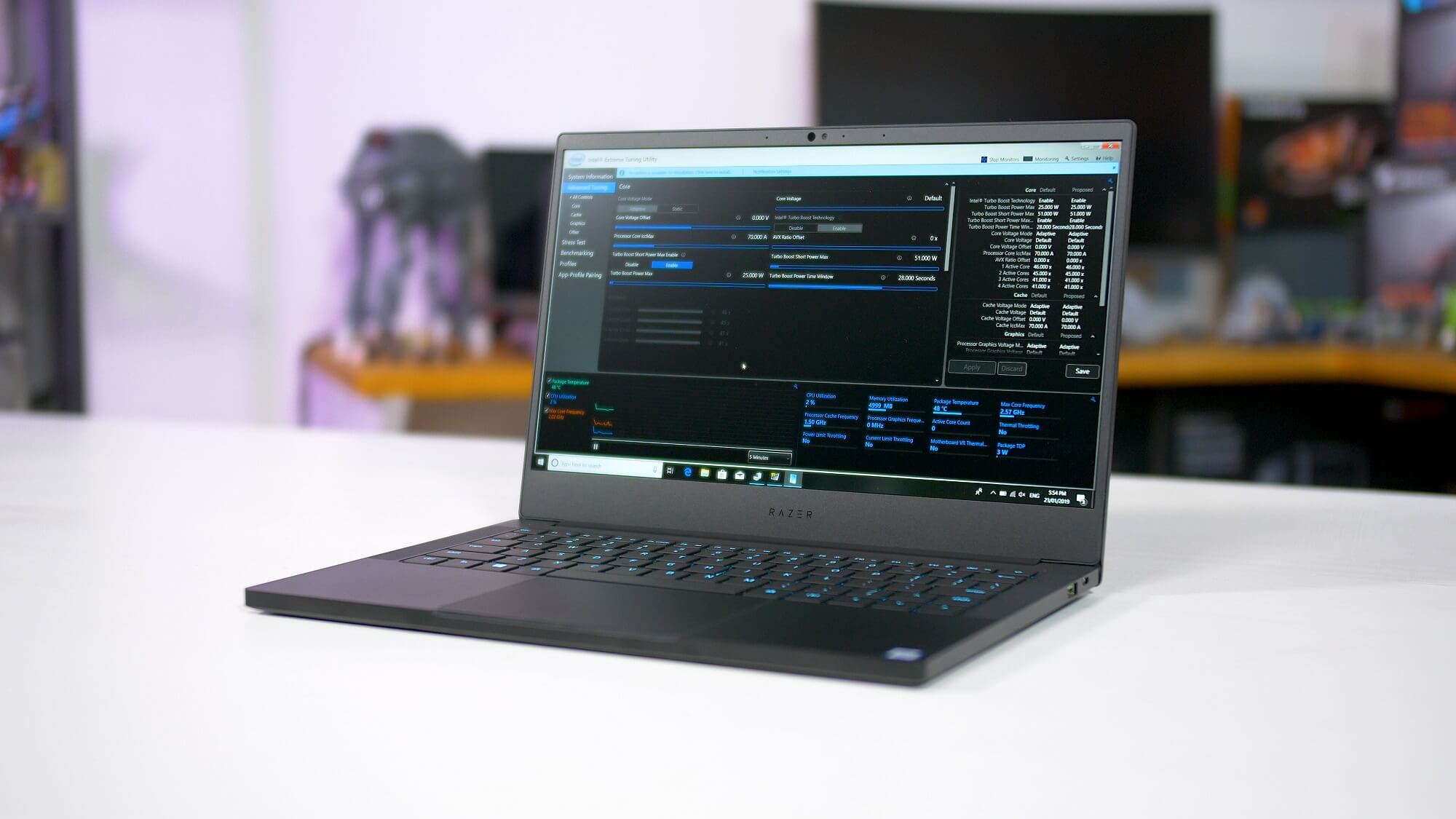 La nouvelle lame Stealth utilise la configuration TDP maximale de 25 W pour ce processeur. Nous verrons donc comment cette puce fonctionne dans les périphériques qui choisissent cette configuration et qui ont des refroidisseurs plus grands. Dell, par exemple, a tendance à utiliser 25W pour sa ligne XPS. Ensuite, en utilisant l’utilitaire de réglage extrême d’Intel, nous avons également été en mesure de ramener le processeur à sa configuration standard de 15 W; il s’agit de la configuration la plus courante. Elle reflète la majorité des ultraportables qui utiliseront ce processeur.