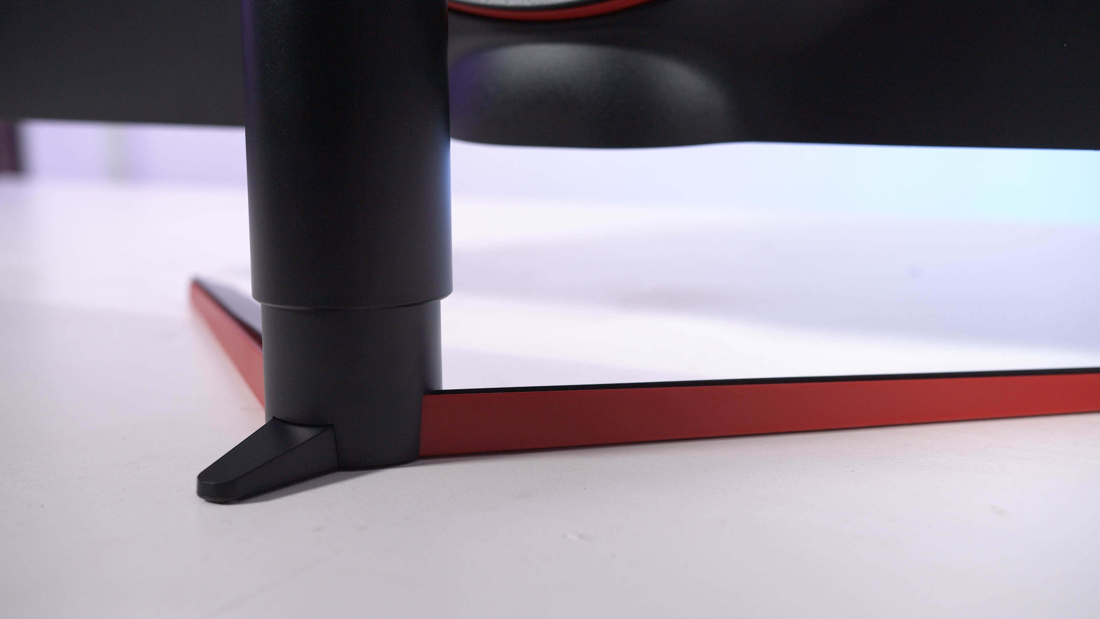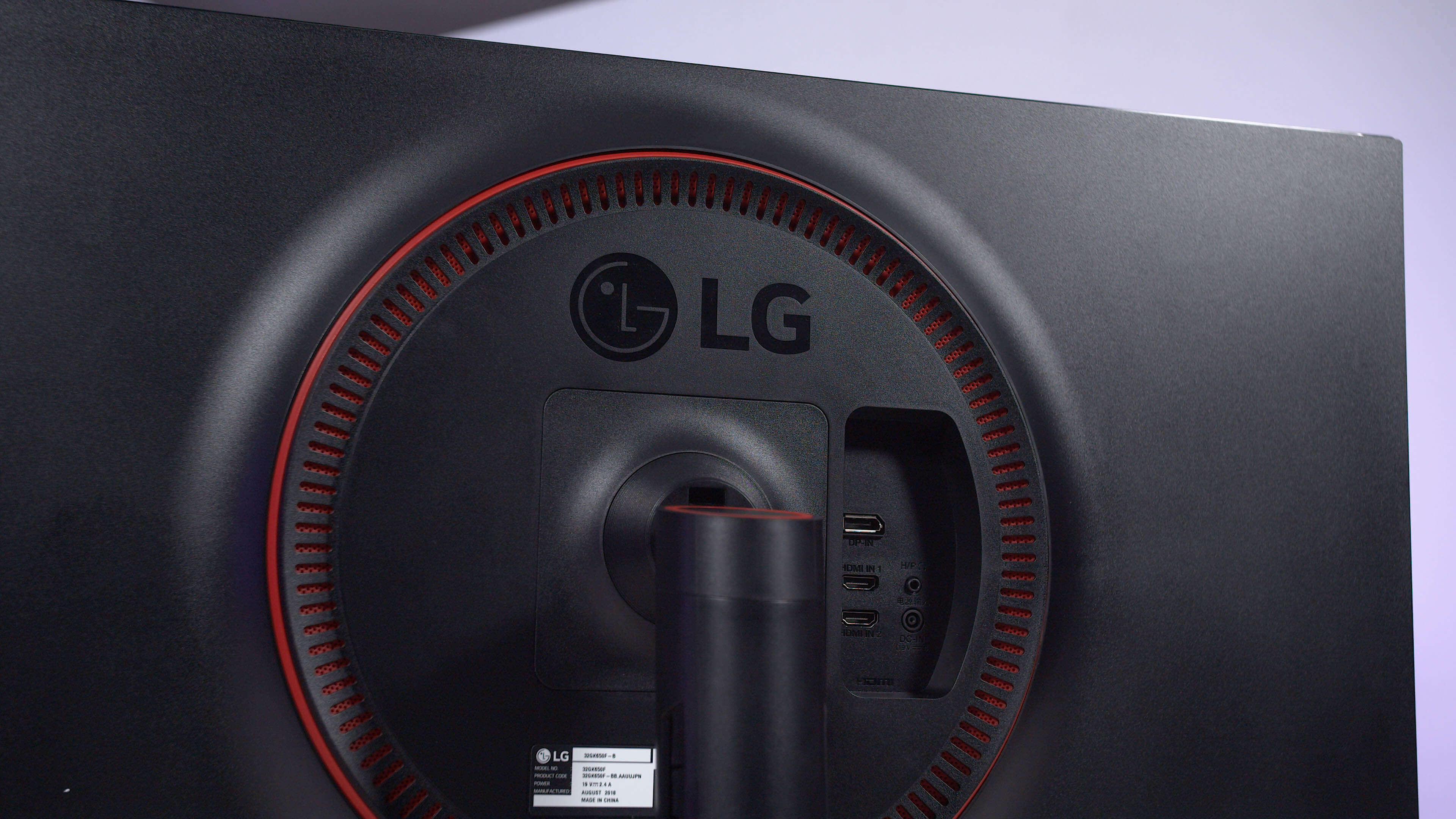 La 32GK650F utilise le style UltraGear actuel de LG, qui comprend un simple socle en forme de V en plastique noir, un panneau de base avec des contours minces sur trois côtés, ainsi qu’un simple arrière en plastique noir qui, à notre avis, a fière allure. Quelques points saillants en rouge confèrent un intérêt supplémentaire au design et il n’ya pas de LED RGB que nous apprécions en quelque sorte.