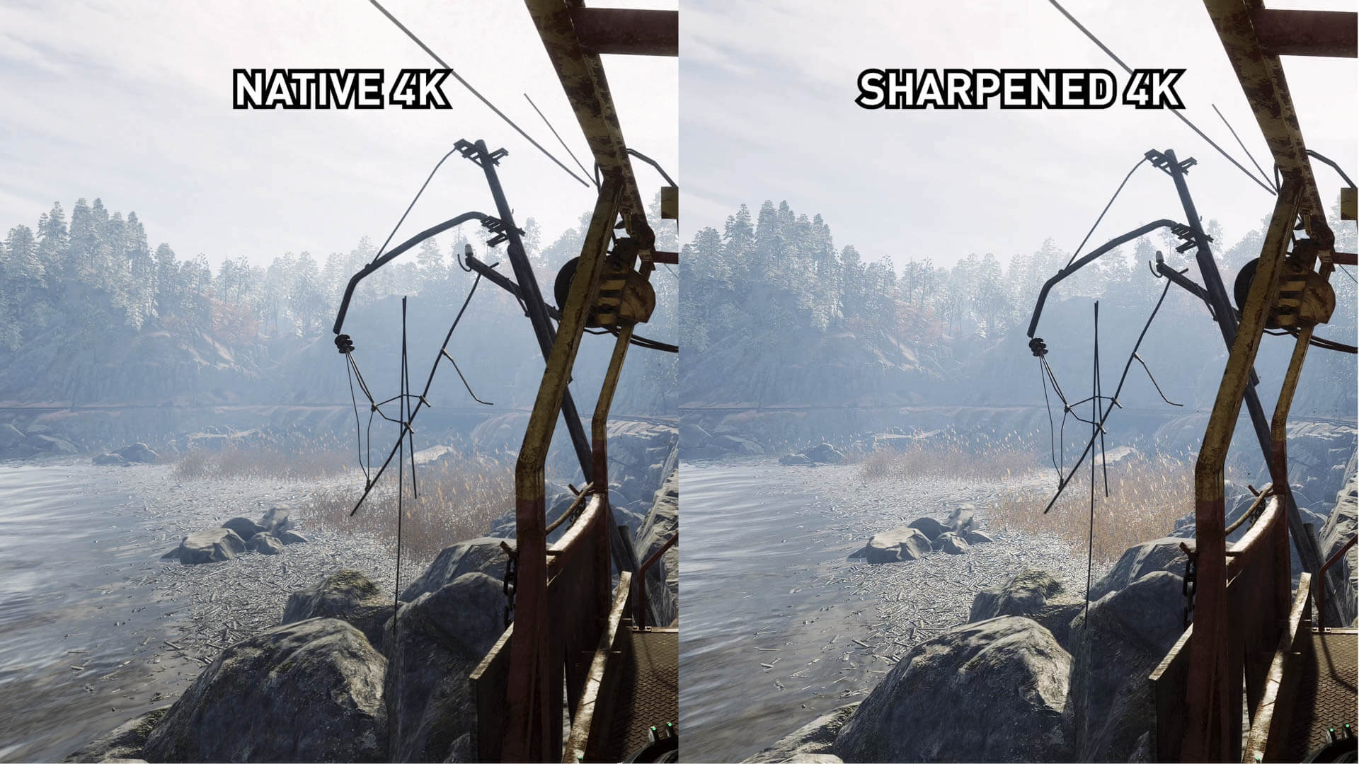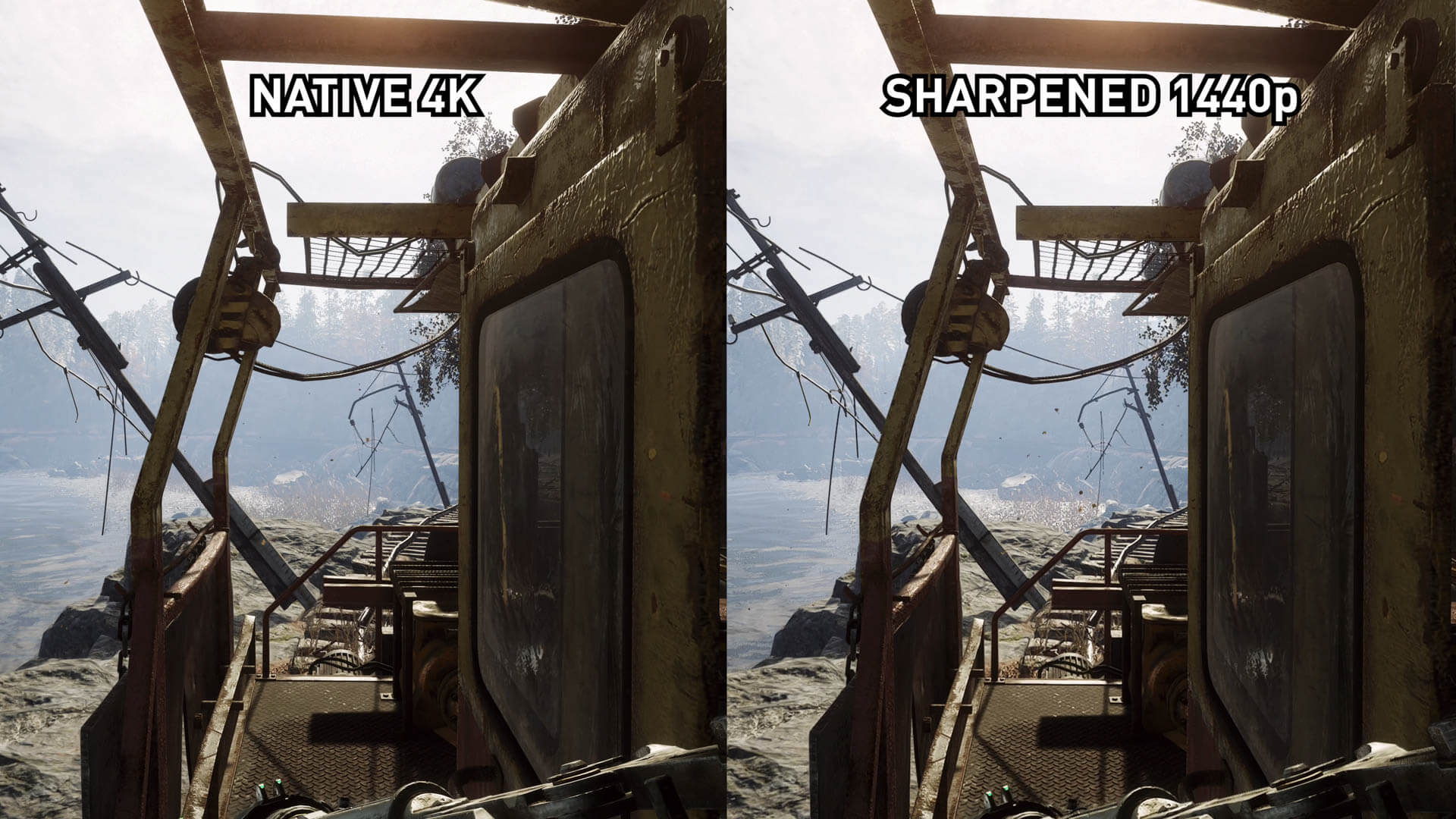 Il existe également des éléments que l’algorithme CAS ne sait tout simplement pas ignorer; il ne sait pas vraiment quels éléments doivent être nets et lesquels ne devraient pas. Par exemple, près de l'eau ici, Metro Exodus possède des artefacts de réflexion de l'écran. Ils sont plus visibles lorsque RIS est activé, car les artefacts sont affinés pour devenir plus visibles. Un problème mineur, mais quelque chose que nous avons repéré.