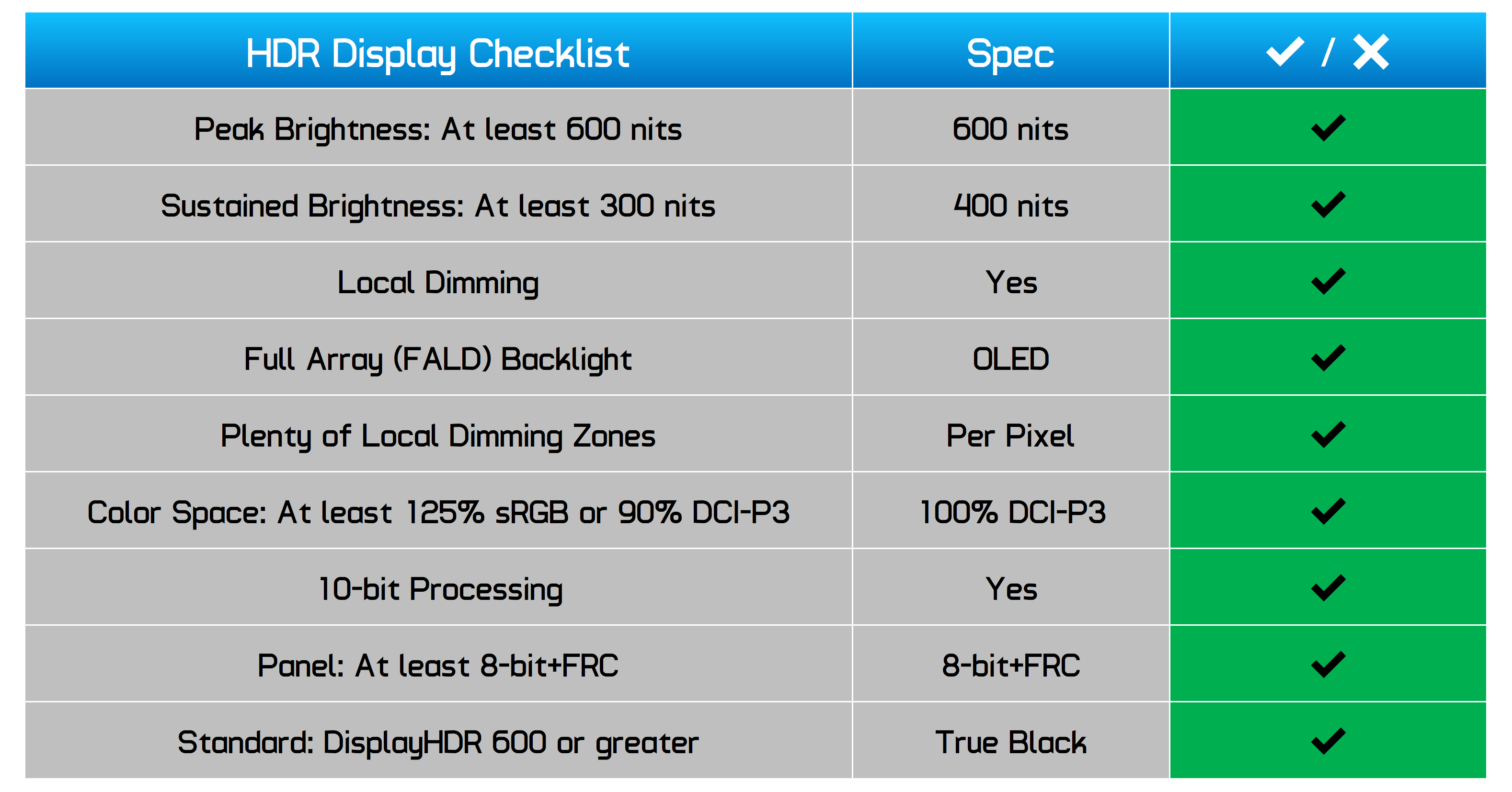 En ce qui concerne les performances HDR, la seule façon d’obtenir du vrai HDR sur un ordinateur portable est avec un écran OLED, tout simplement parce que vous ne pouvez pas intégrer un rétroéclairage local à variation complète dans ce facteur de forme. Donc, OLED avec un classement DisplayHDR True Black est la voie à suivre.