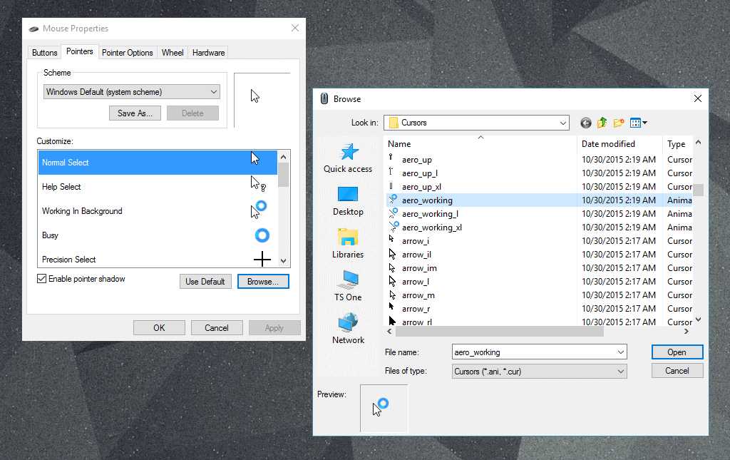Pour les fenêtres: Accédez au Panneau de configuration> Souris> Pointeurs et remplacez le pointeur Normal par le pointeur actif.