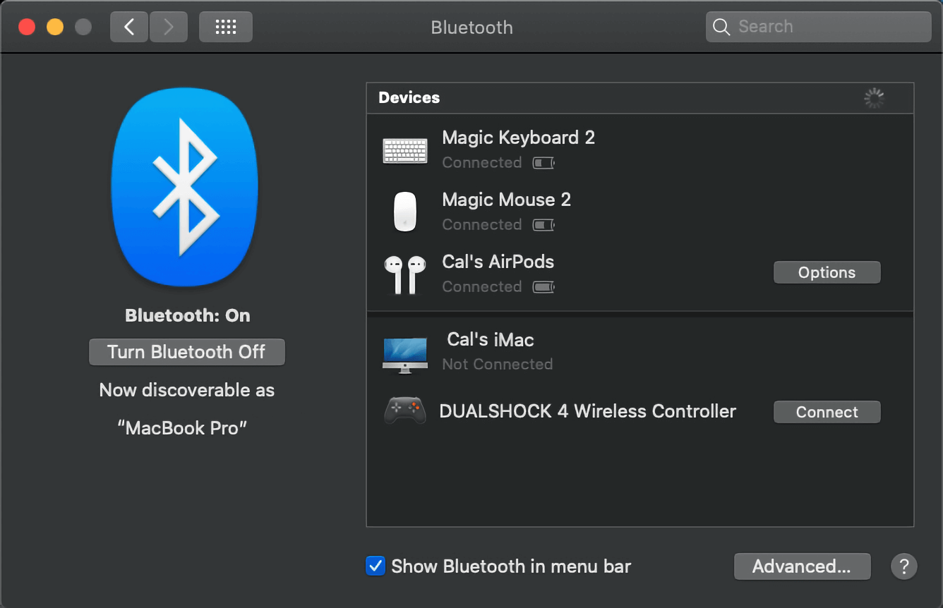 Avec le contrôleur en mode de couplage, accédez aux paramètres de votre Mac et ouvrez les préférences Bluetooth. Cela peut prendre quelques secondes ou plus pendant que le Mac recherche le signal, alors soyez patient. Finalement, une liste pour cela apparaîtra.