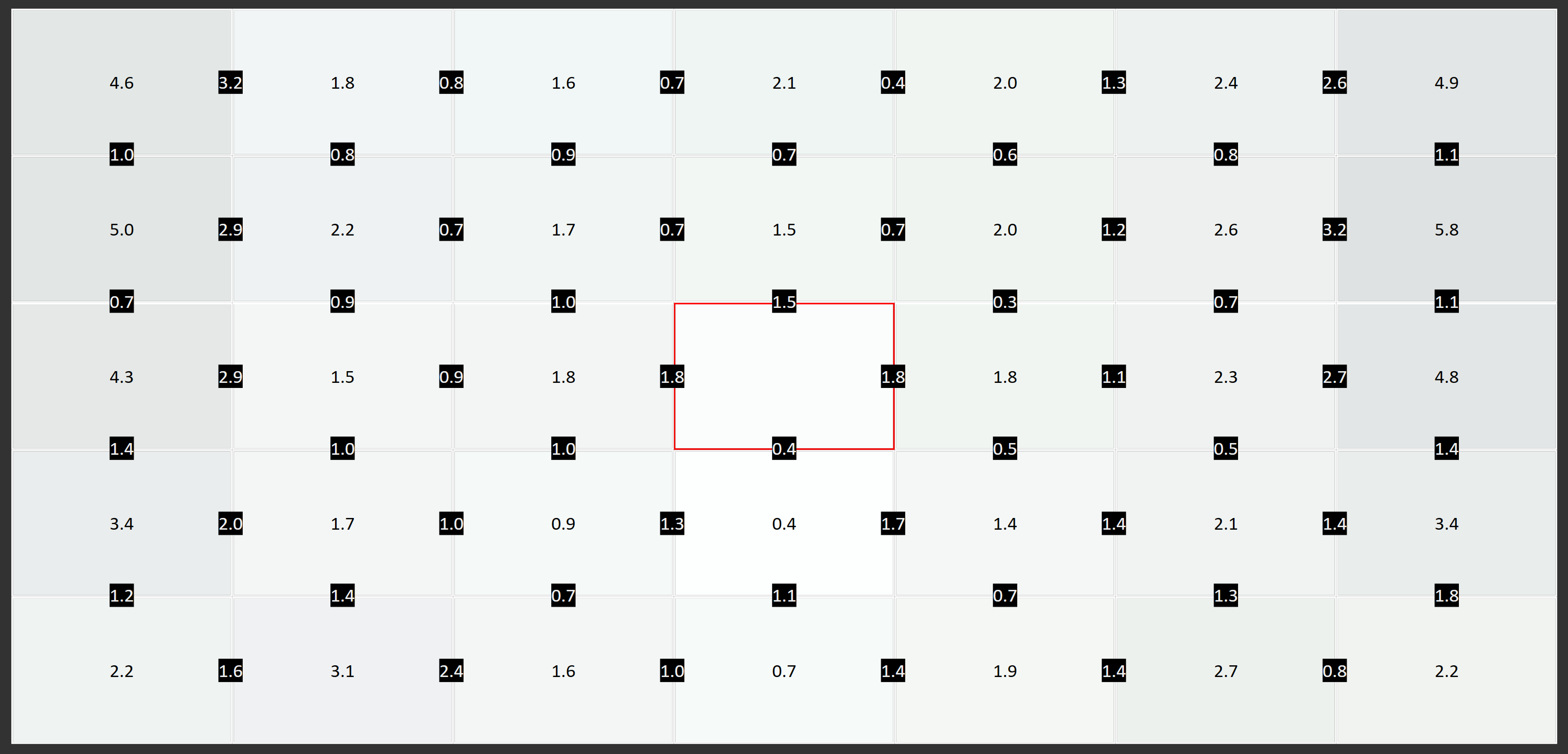 Passons maintenant à l’uniformité, ce sont là encore de bons résultats pour un très grand nombre. Nous obtenons des retombées typiques le long des bords extérieurs, mais la zone centrale est raisonnablement précise, certainement plus que certaines courbes ultra-longues que nous avons testées.