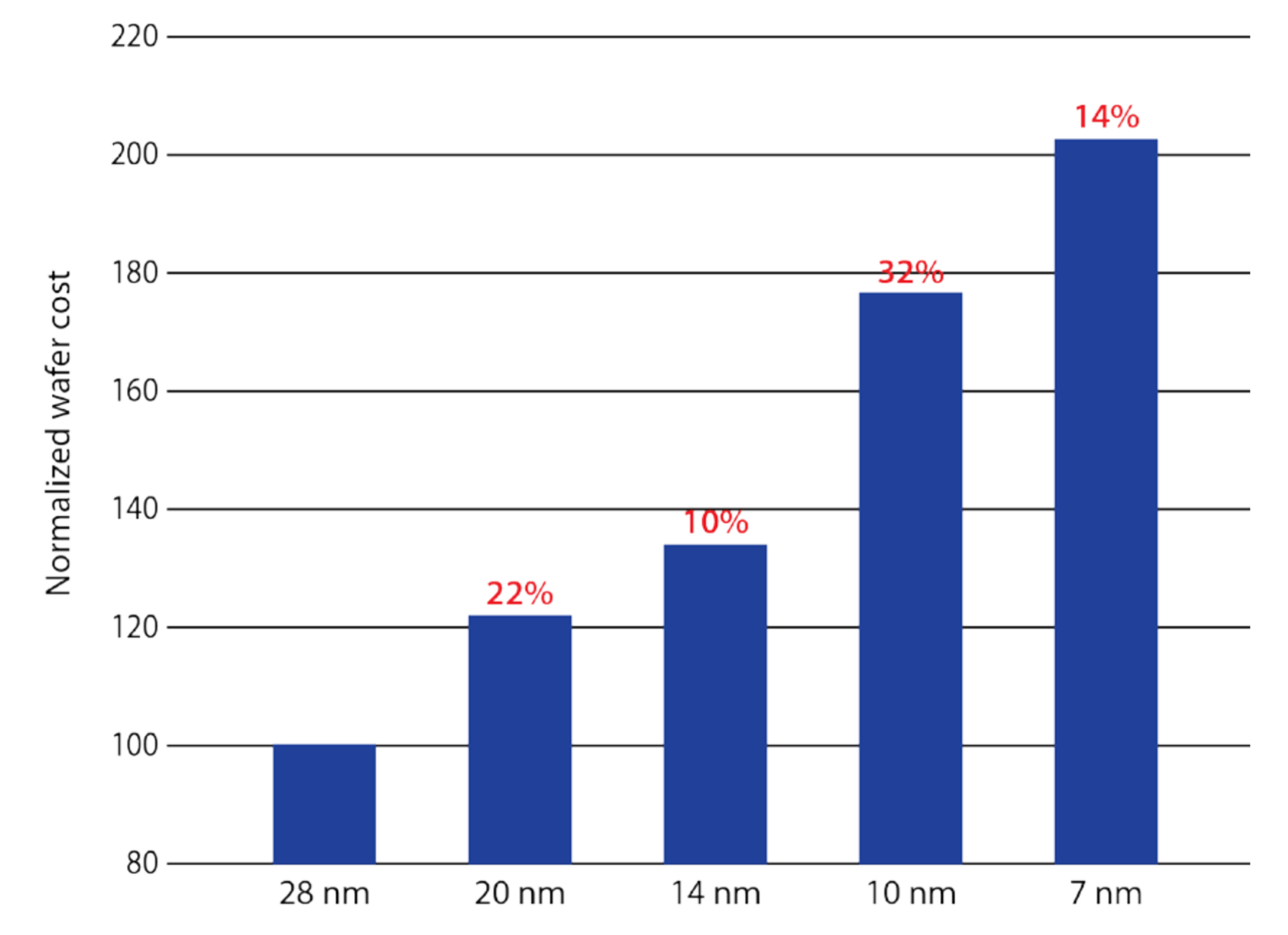 Par exemple, si nous supposons que le nœud de processus à 28 nm est le même que celui utilisé par Intel pour fabriquer leur gamme de processeurs Haswell (comme le Core i7-4790K), leur système 10 nm coûte presque le double par tranche. Le nombre de puces que chaque plaquette peut produire dépend fortement de la taille de chaque puce. Toutefois, une échelle de processus plus petite signifie qu'une plaquette peut potentiellement donner plus de puces à vendre, contribuant ainsi à compenser la hausse des coûts. En fin de compte, toutefois, une partie aussi importante que possible de ce coût sera supportée par le consommateur en augmentant le prix de détail du produit, mais cela doit être mis en balance avec la demande du secteur.